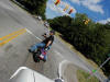 This is Kevin and said bike. On the right, I'm taking a photo out of the window of the van as we followed Kevin to the cemetery where my sister is buried.