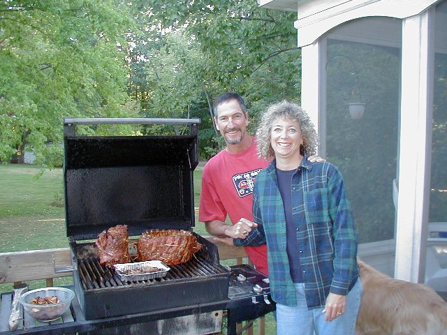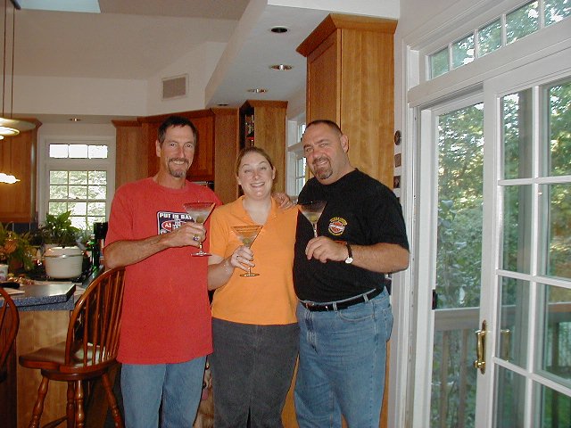 That afternoon I made my world-famous slow-cooked pork spare ribs, which can be seen on the grill in the background in the photo on the right. On the left is Kevin, me and Elise Hammond, Kevin's daughter and my niece, toasting with a pre-dinner martini.