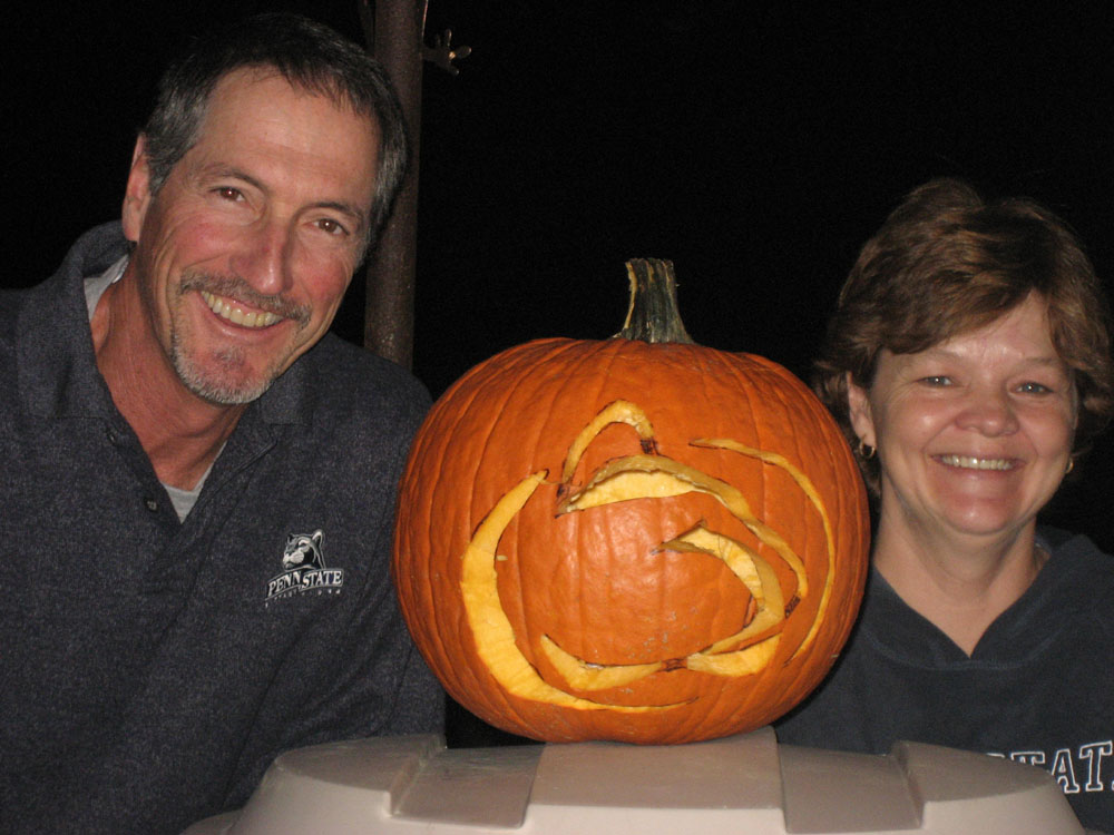 Anyway, we thought it would be a good idea to carve a Nittany Lion pumpkin, which we did. If you squint your eyes you can sort of see the Lion-head logo.