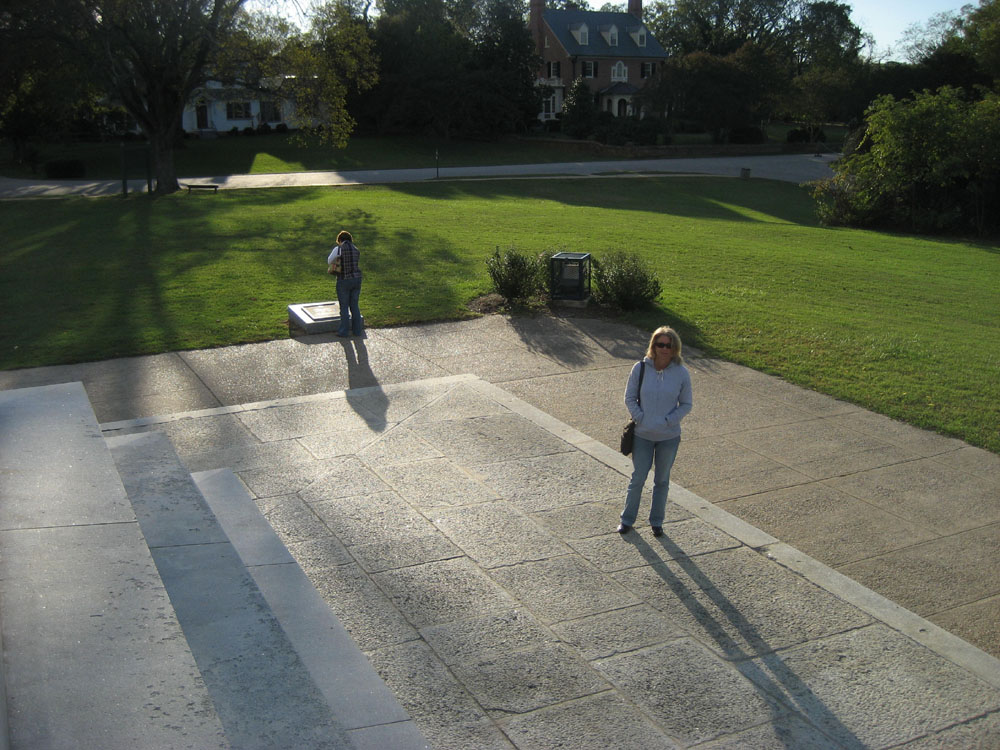 There are also many Civil War sites and other historically significant structures. If you're looking for a place to have lunch though, go somewhere else. There are no places to have lunch except for one restaurant that was closed when we were there. We were hungry and Lorri spotted some Pecans lying around on the grounds of "Westover", so we cracked a few open and ate 'em. You can't go inside Westover but you can go inside the "necessary" building. Judging by that, (it's a brick five-holer with a fireplace!) the interior of Westover must be pretty high-end. I'm not kidding, it's a five-holer! Lorri and I were having a little trouble figuring out exactly how you take advantage of a five-holer with a fireplace. I mean, do you head out there five at a time and, you know, just sit around and shoot the....? Sorry.