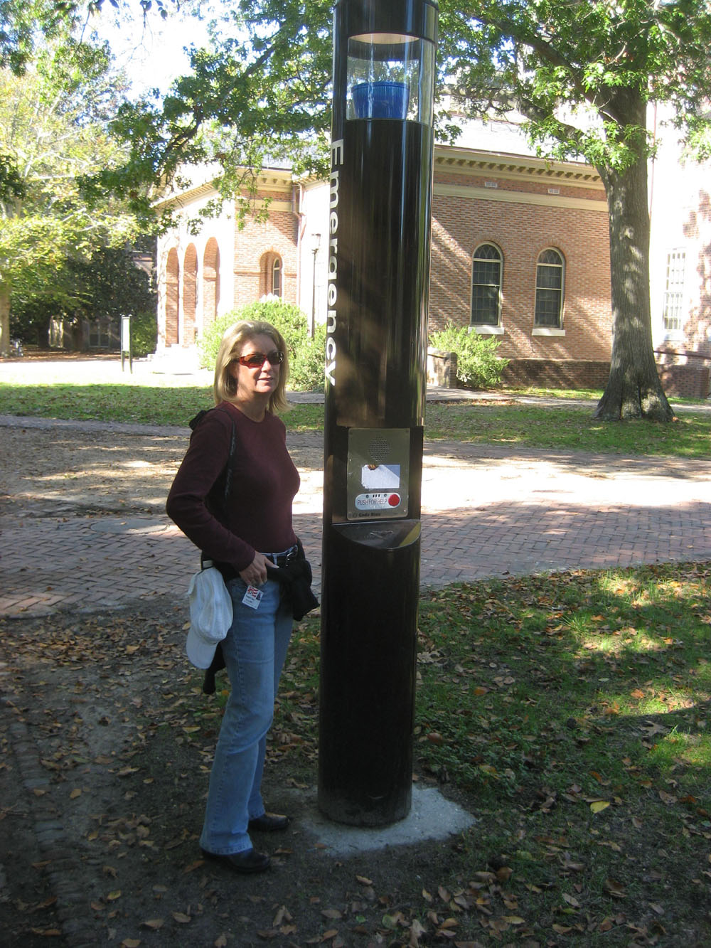 One day as we were walking across the William and Mary campus in noticed that the emergency call stations that they have scattered about have a button to push for help and a label that says code blue. I was wondering if that meant if I pressed the button when I really, really wanted a martini, if someone would bring me a code blue? I didn't try it.