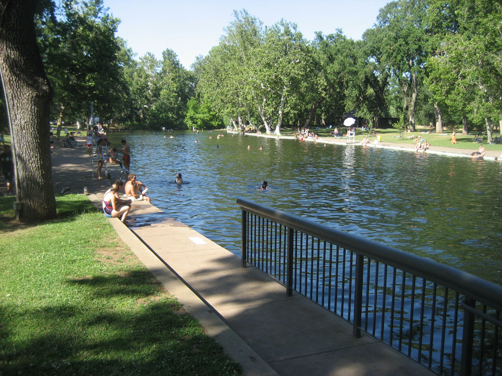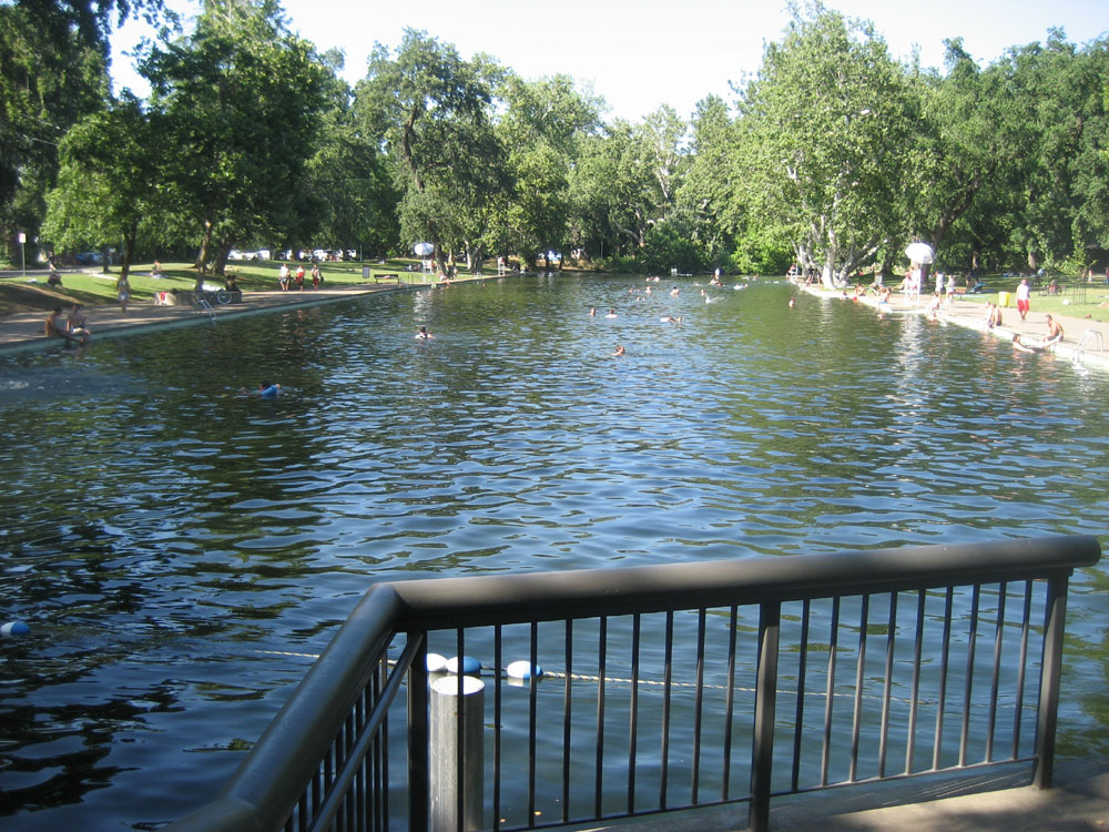 and skinny-dipping late at night in the town's famous outdoor, river-fed