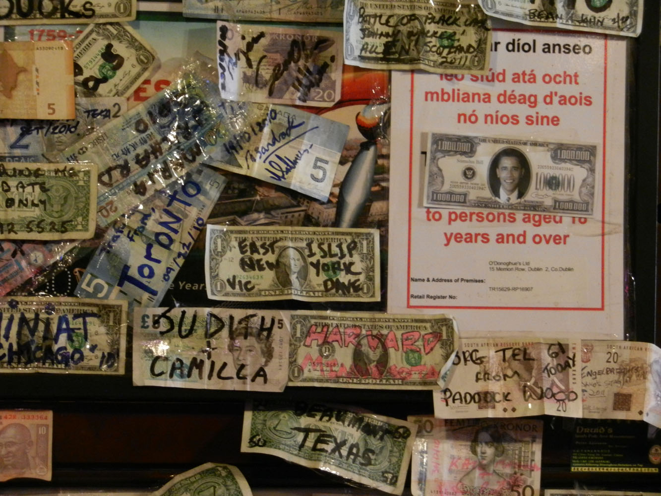 They had a collection of various bills on the wall behind the bar so I gave them one of my million dollar "stimulus" bills with Obama on the front and Fantasy Land on the back.