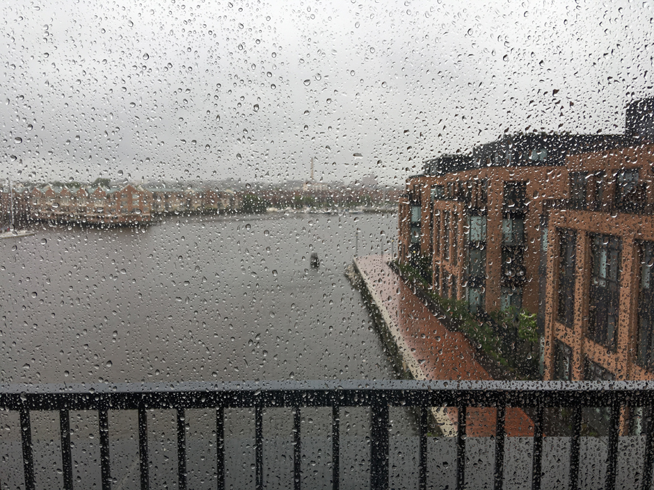 Crappy Weather, continued. Our apartment at Wharf Street in Fells Point was very nice. This is the view from the living room window. Can you tell it was raining?