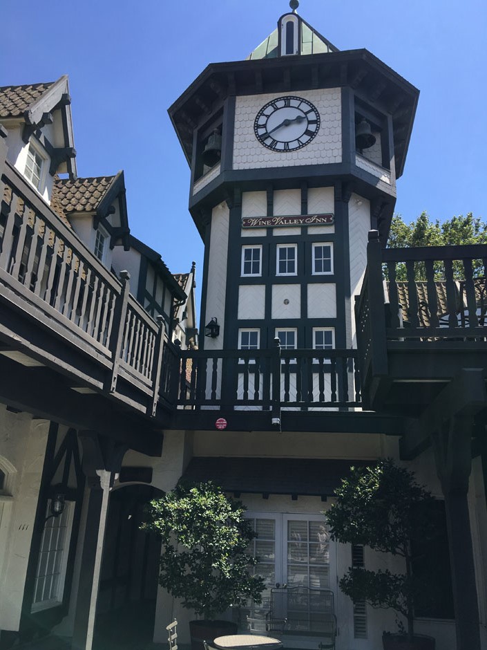 This is the clock tower at the Wine Valley Inn (WVI) in Solvang where much of the architecture is reminiscent of a small 19th century Danish town.