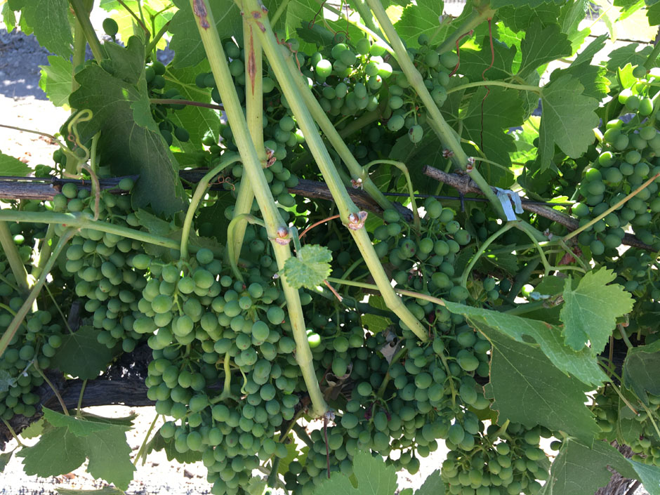 In mid-July, the grapes are still a little green, maybe a lot green.