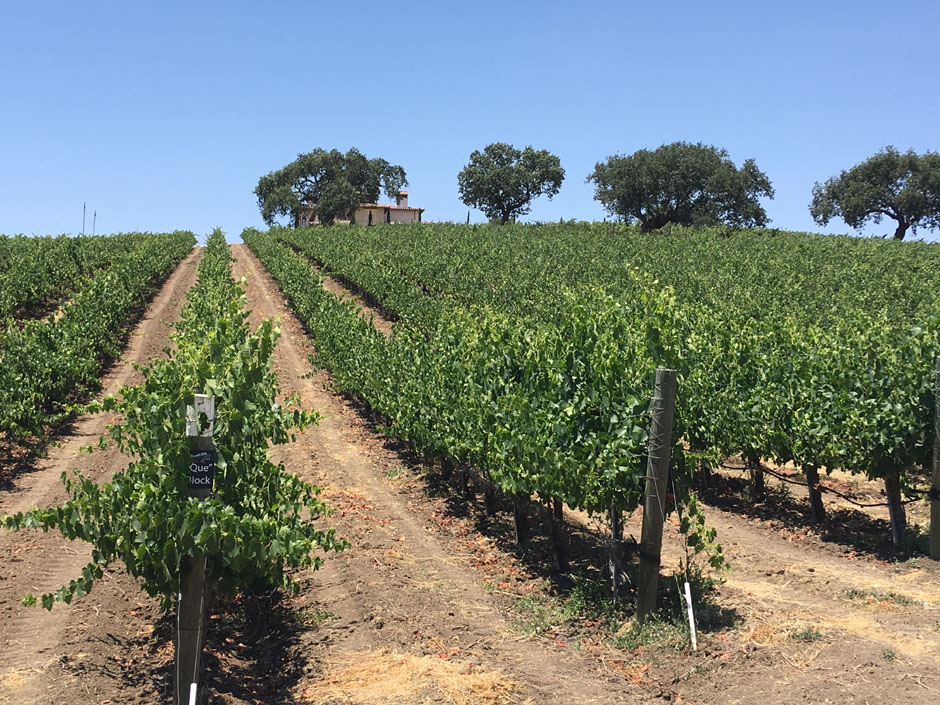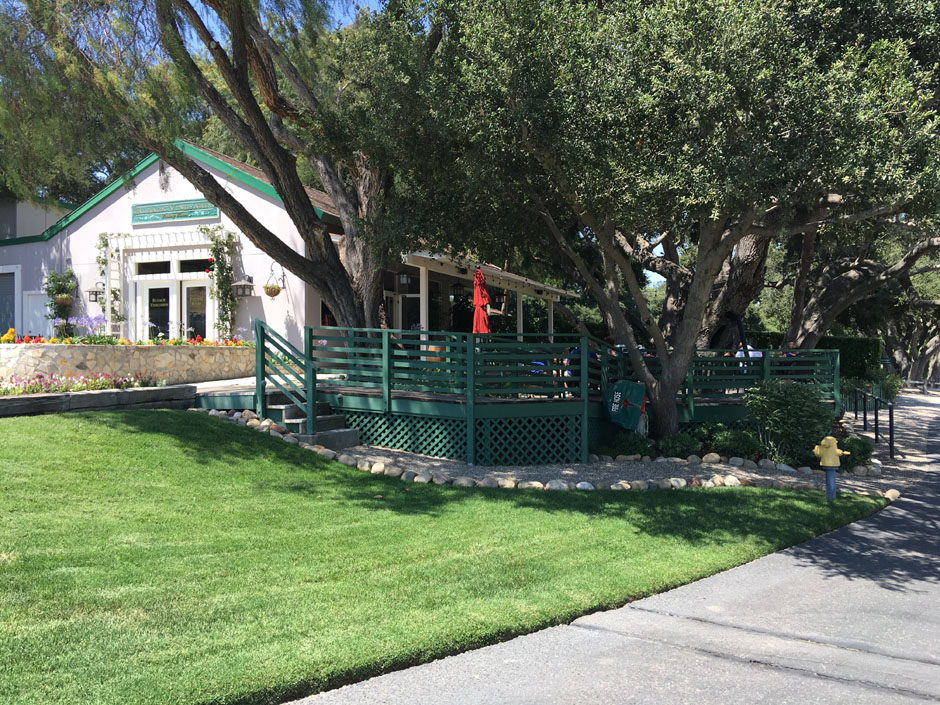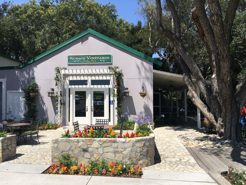 Rusack winery with the patio area that stretches back under those old oaks.