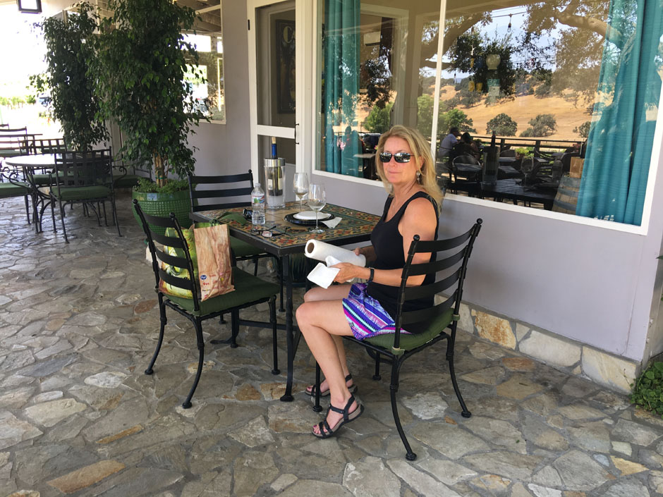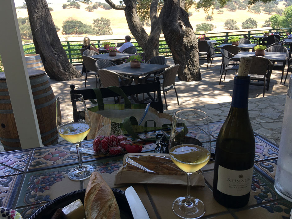We love the shaded patio at Rusack. We bought a bottle and spread out our cheeses, bread, fruits and nuts. Does life get any better?