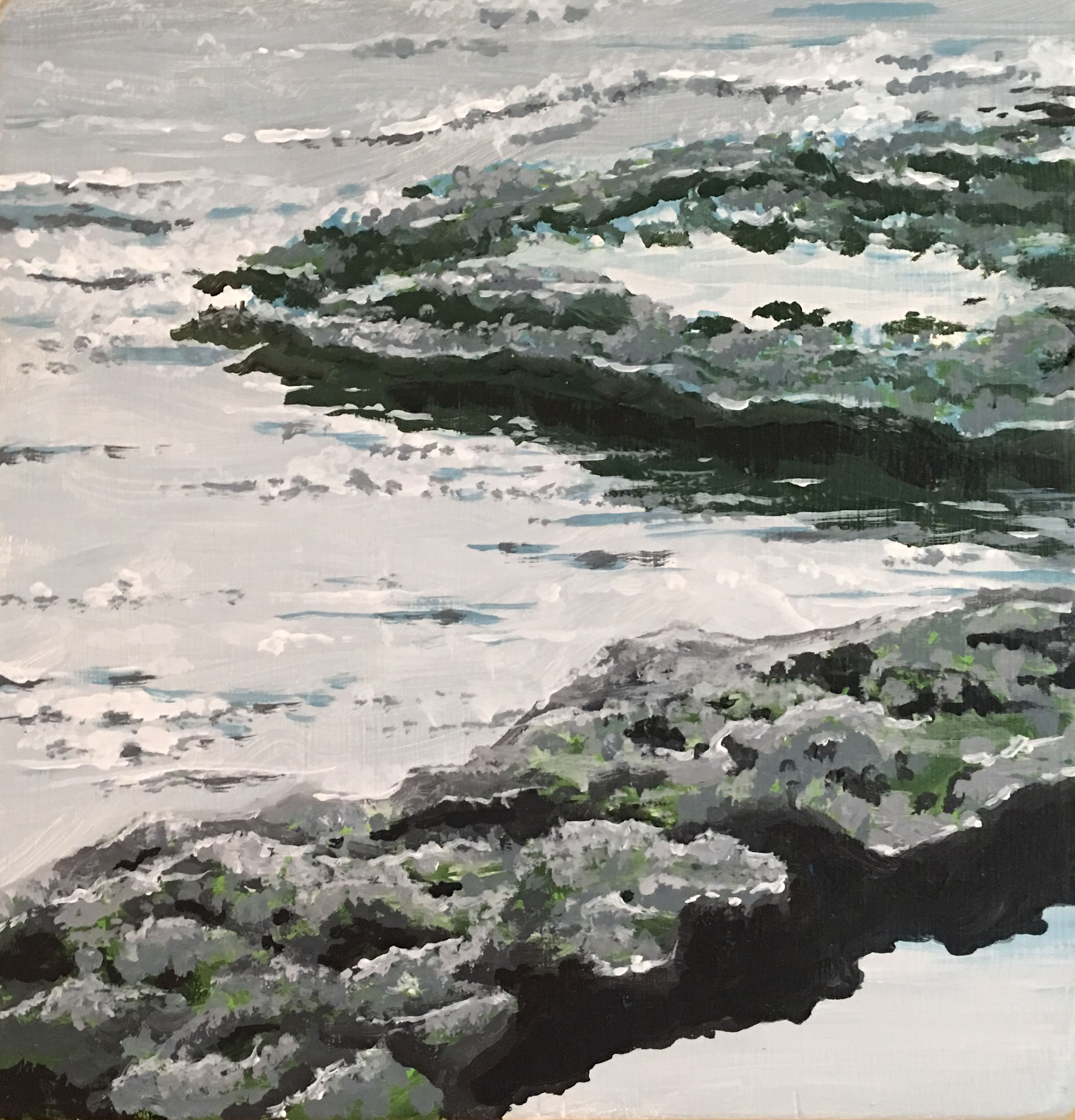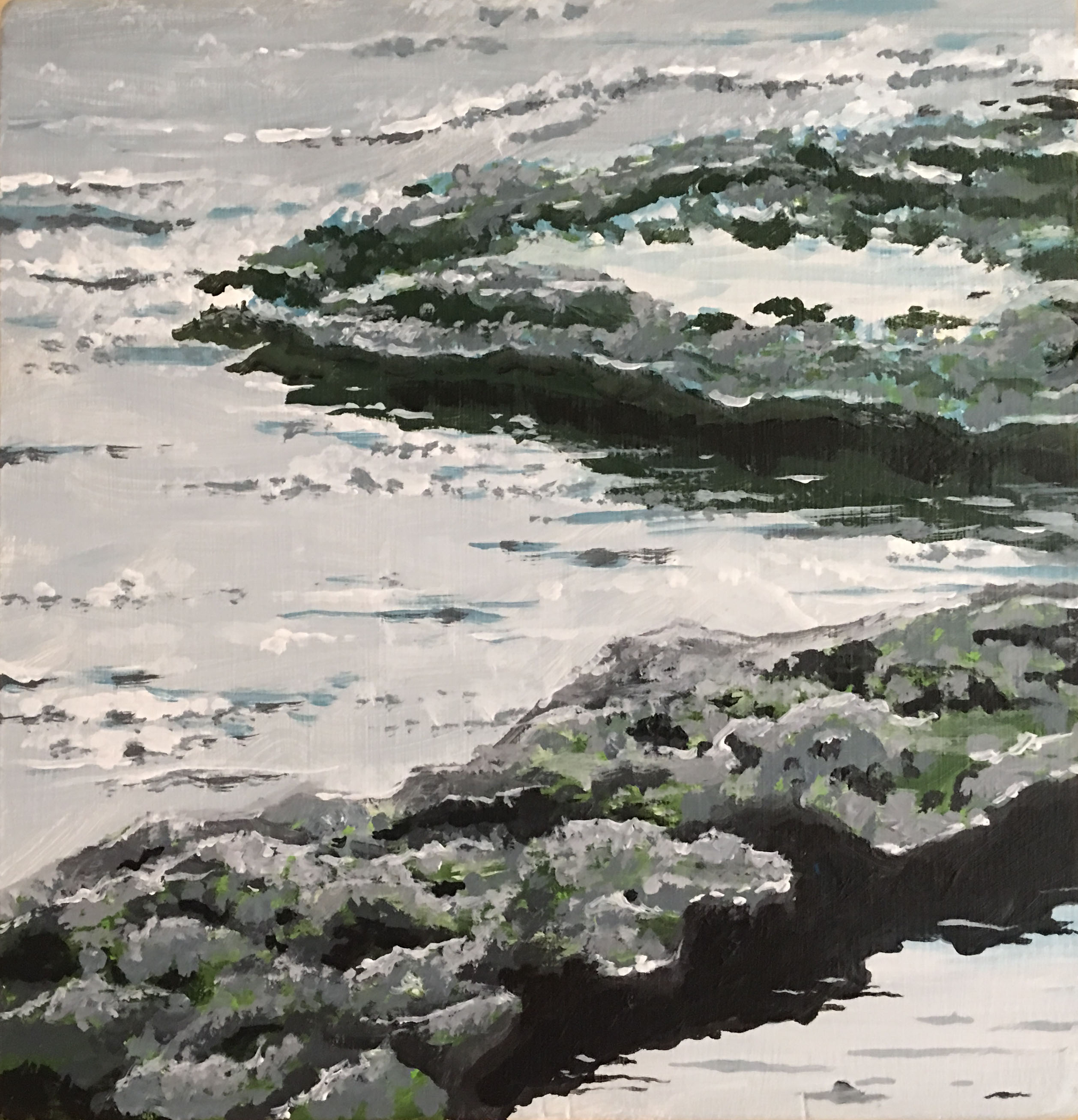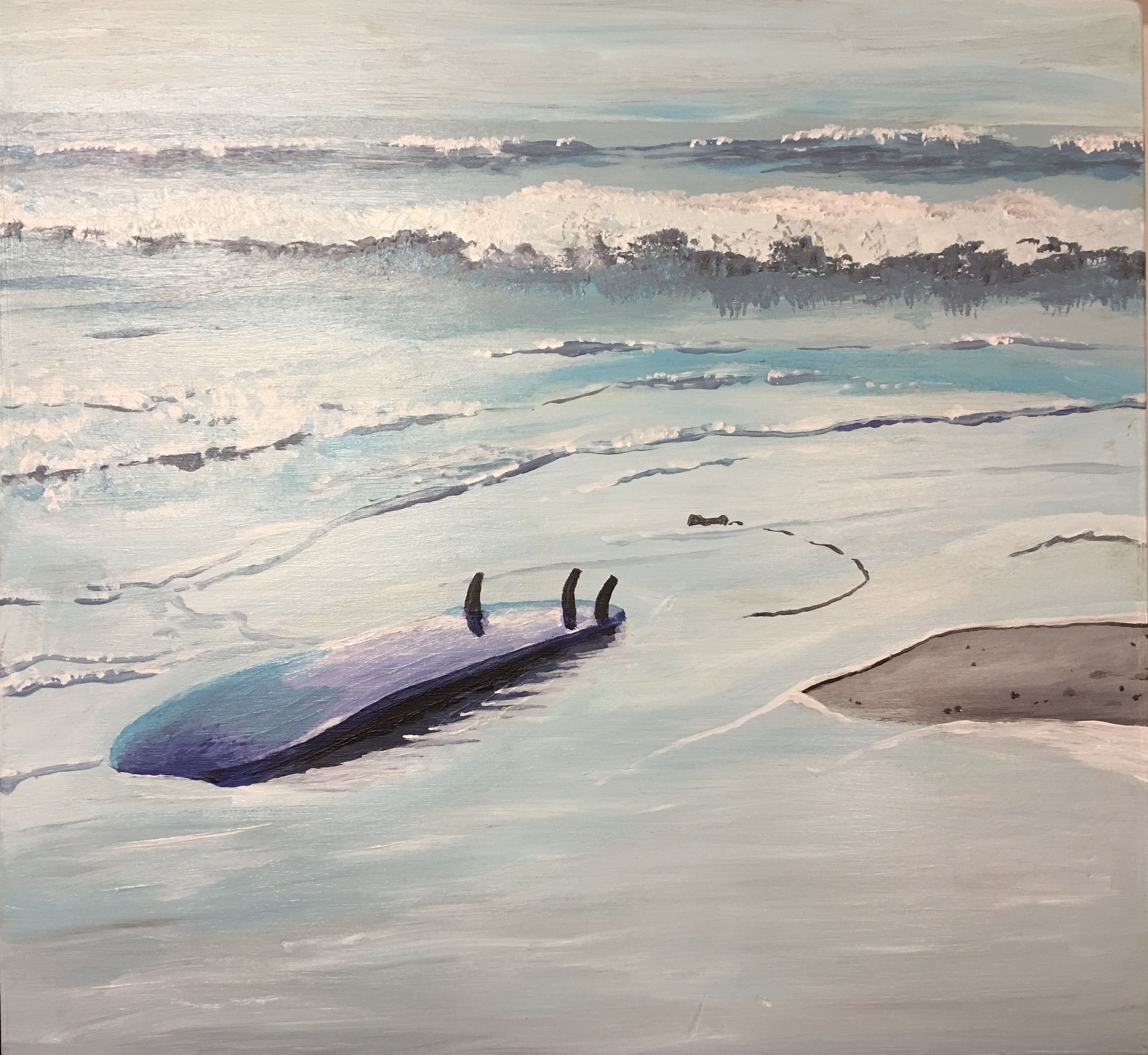 9" x 9.5" Acrylics on Pine Board, August, 2018