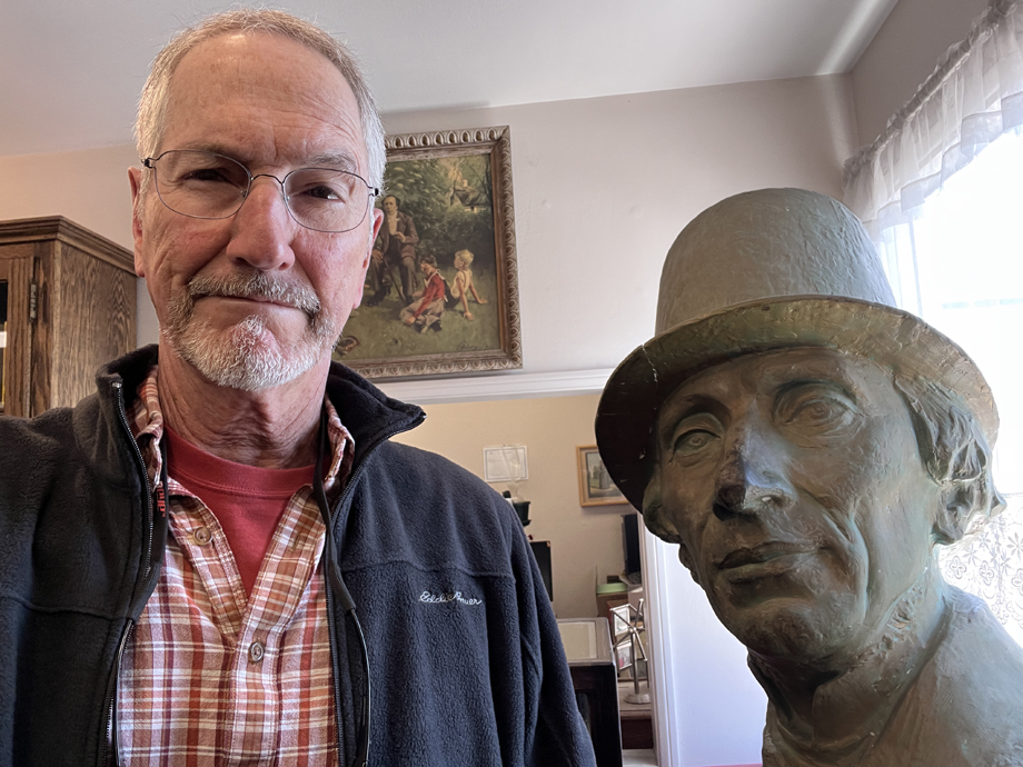 Gnarly old guy in front of gnarly old vines.