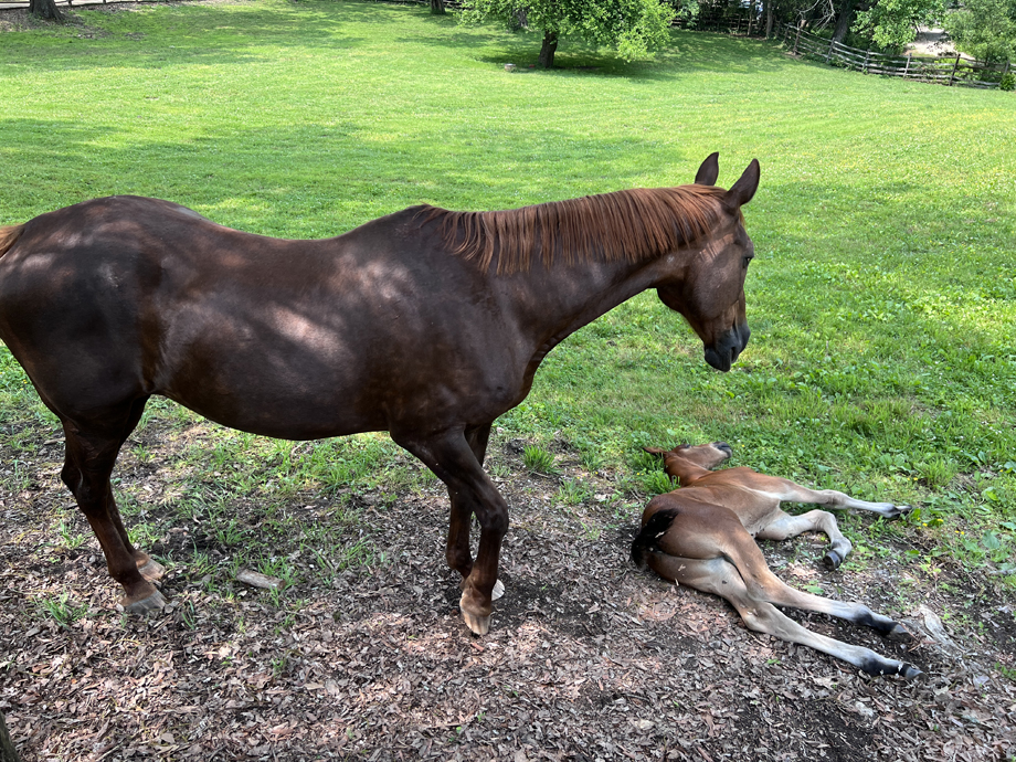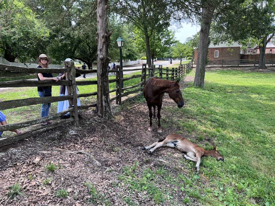 They not only preserve buildings and practice colonial era craftsmanship, they breed all sorts of animals whose ancestors came over on the Mayflower, maybe. Here we have a mama and newborn, um, filly?
