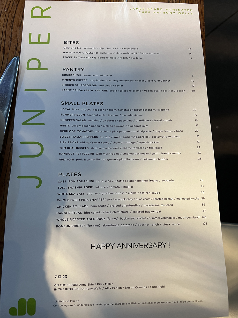 Here is the menu. Notice the date and Happy Anniversary!