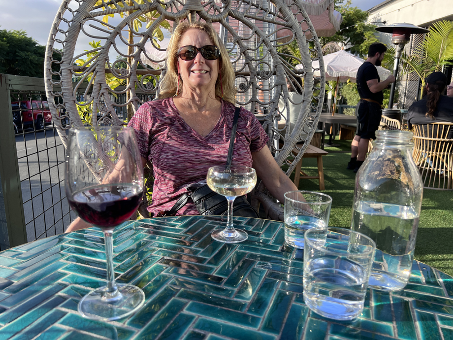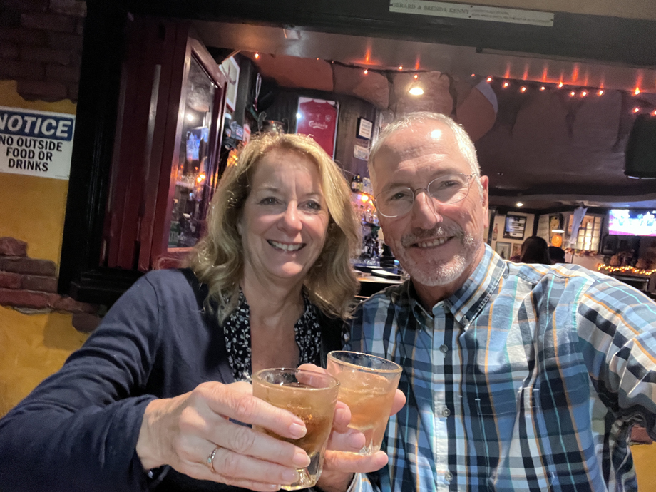 We checked in, got organized and headed out for some refreshments, such as Guinness here at the Farmer's Table where we sat at the sidewalk bar with the sun at our back and our drinks at our front.