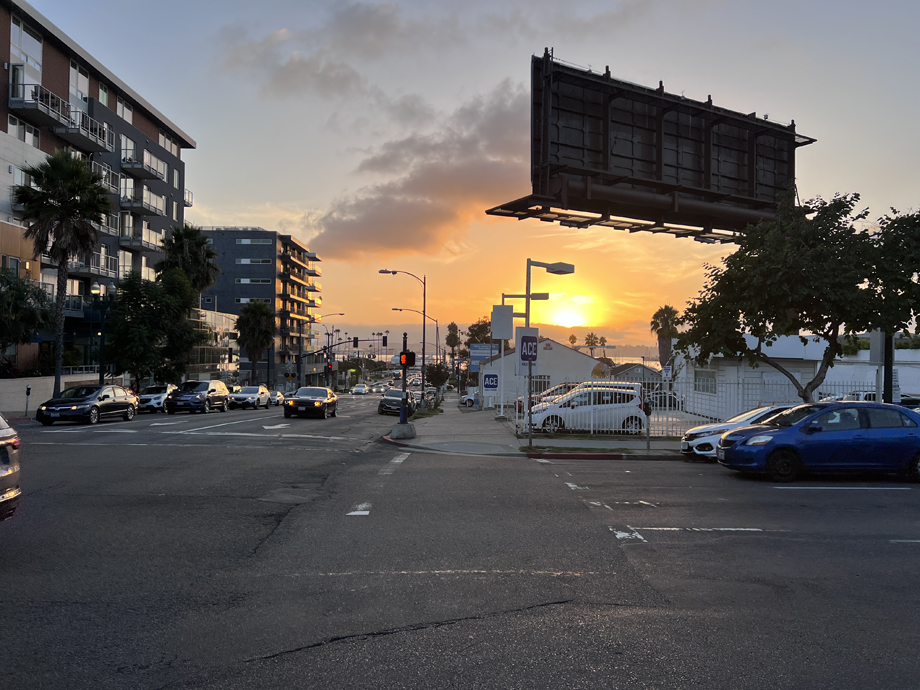 Caught a sunset over the Bay and Point Loma on the way back to Le Pensione