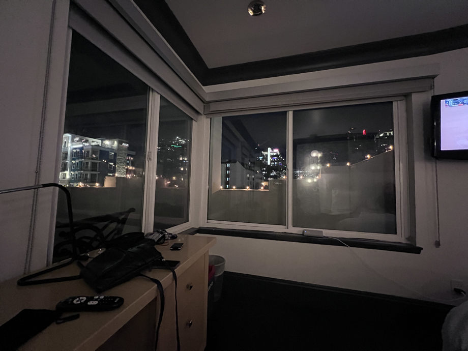 This is our hotel and our room was on the 3rd floor corner. It's the one with the lights on just above the little balcony with the string lights on top. It was still a little early to head back, so...