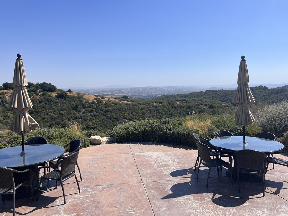 It's on a hilltop with great views and we thought maybe it would be cool enough up there to sit outside. Alas! it was not.