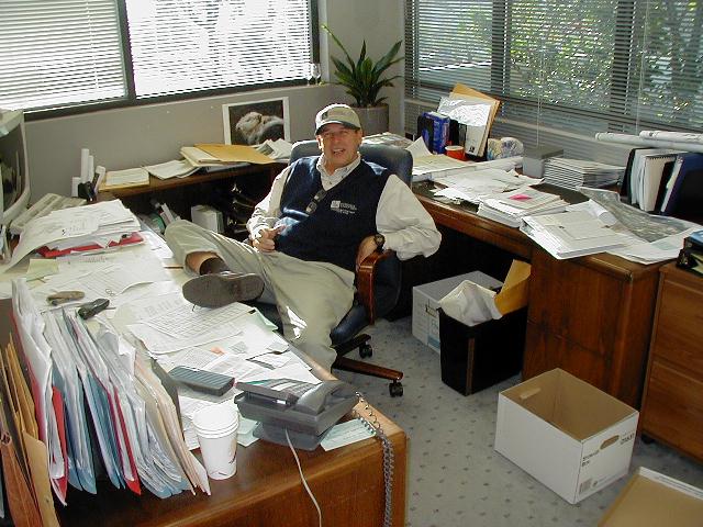 Tom decorating Doug's office; The results; Doug & friend