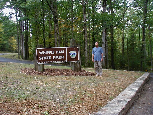 September 16, 2002, we headed south from State College toward Gettysburg and then Baltimore. We stopped by Whipple Dam State Park, which we used to call "Whipples" when we would go there occasionally with a car full of kids and beer when we were Penn State students. On the right is the first of what will probably be many, many "fall color" photos. This was taken at Whipples.