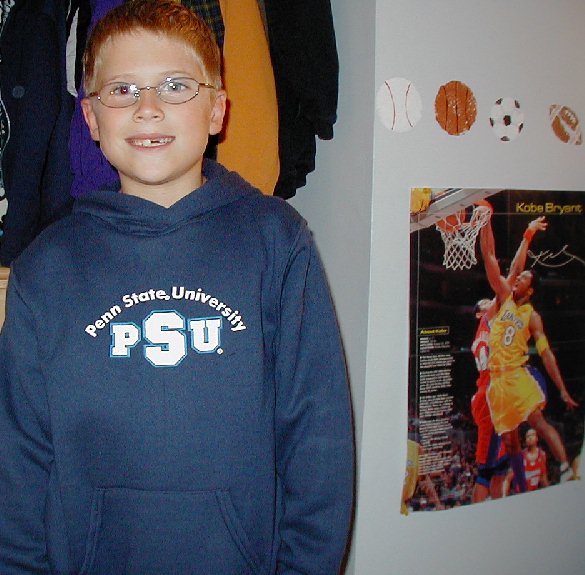 Here we are in Jake's bedroom. Jake is wearing his new PSU sweatshirt. You West Coast LA Laker type fans, be sure to note the poster of Kobe Bryant on his wall. How did that get there? Grandpa Jack and Jake are displaying the books they were reading that night.