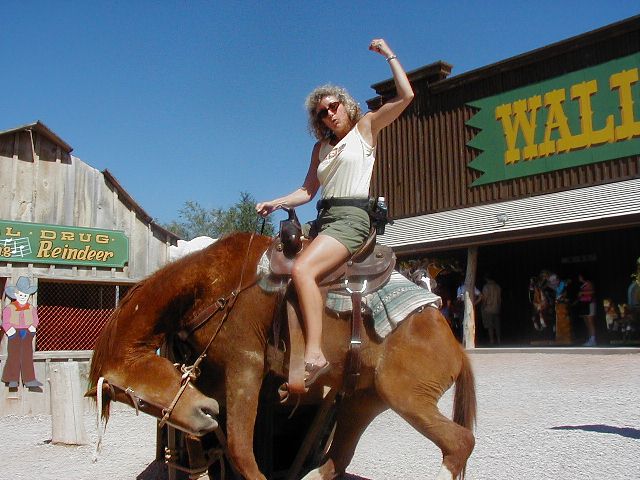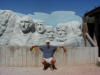 Wall Drug Store is advertised on Billboards for hundreds of miles in each direction along I-90. Therefore, if you're a savvy traveler, you will drive right by. But, we just couldn't. Wall Drugs is a conglomeration of shops, food places, "museums", "art" galleries, and stuff like that, all designed to part the weary tourist with his hard-earned money. They even had a mini Mt. Rushmore which makes the presidents look more like John, Paul, George and Ringo, than George, Tom, Teddy and Abe.