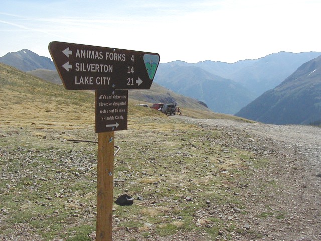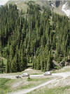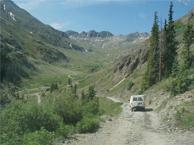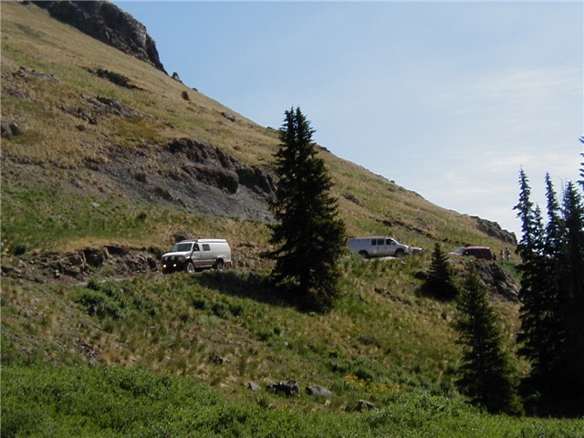 Looking down on one of the switchbacks. Many times it took a three-point turn to navigate these switchbacks. The jeep people sort of looked at us with bemused grins as we lumbered by.