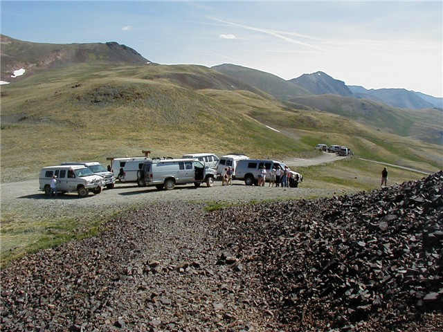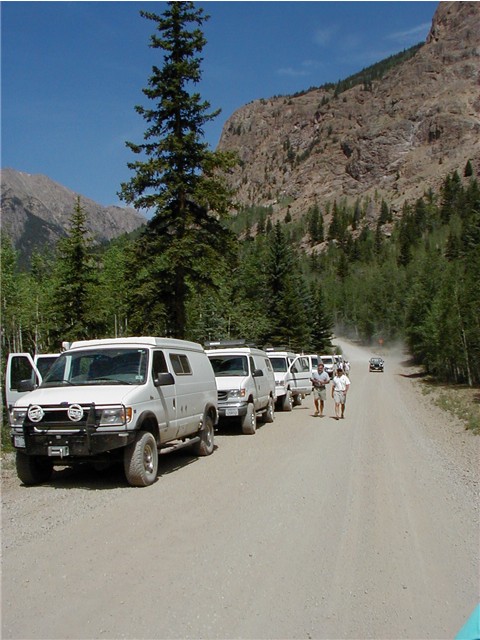 Our leader and a rig; some more Sportsmobiles at Cinnamon Pass