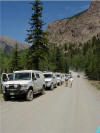 The Alpine Loop winds for 60 or so high-altitude miles in the San Juan Mountains on mostly narrow dirt roads suitable for donkeys, mountain goats, dirt bikes, ATV's, jeeps and of course, 9500 pound 4WD Sportsmobile Motorhomes, lots of 'em. We were in the second group to leave from the Silverton Visitors Center on Tuesday morning with John as our guide. It proved to be quite an adventure.