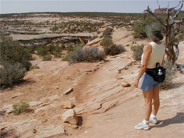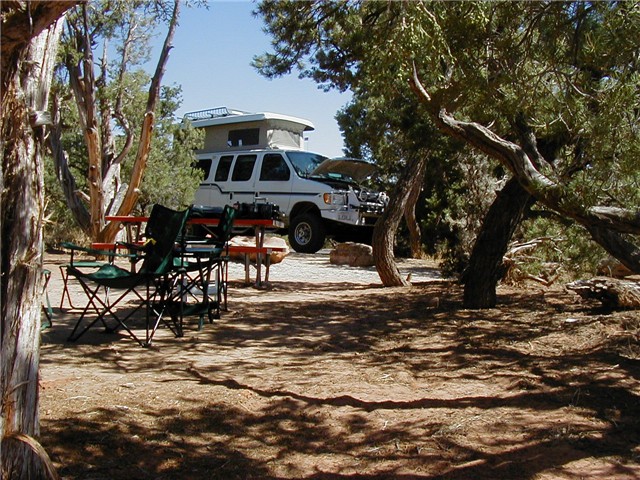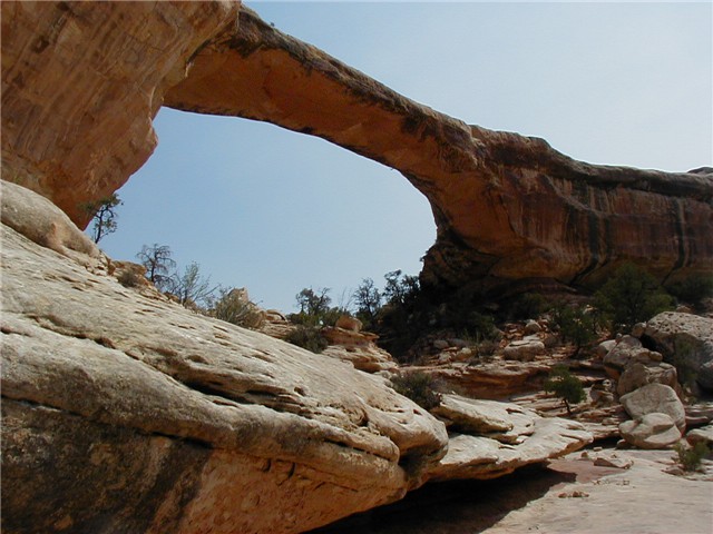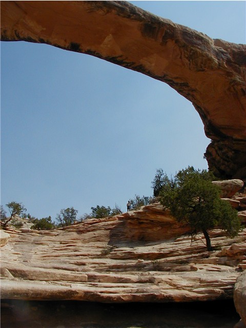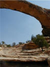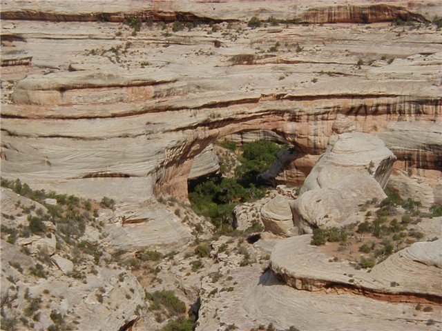 We were lucky enough to nab one of the last available camp sites of the total of 13 that exist in the park. It was a good spot, though and the bridges were impressive. They are created by meanders in water courses much the way the Mississipi carves it way through mud and dirt. Over the eons, these "bridges" were left standing when the water worked against the rock form both sides. Eventually there was no more rock, the meander was short cut and the water flowed under the bridges. Try this link Natural Bridges if you want to know more.