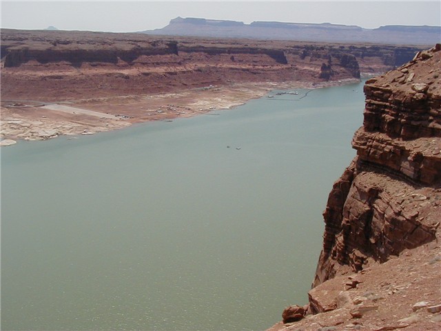 Heading Northwest through Utah on Route 95, we passed over the upper reaches of Lake Powell. We stopped at an overlook to check out the Hite Marina, which is somewhere in the photo below. There used to be a town called Hite but it's under water now. We viewed Hite from a great height. Don't you just hite puns?