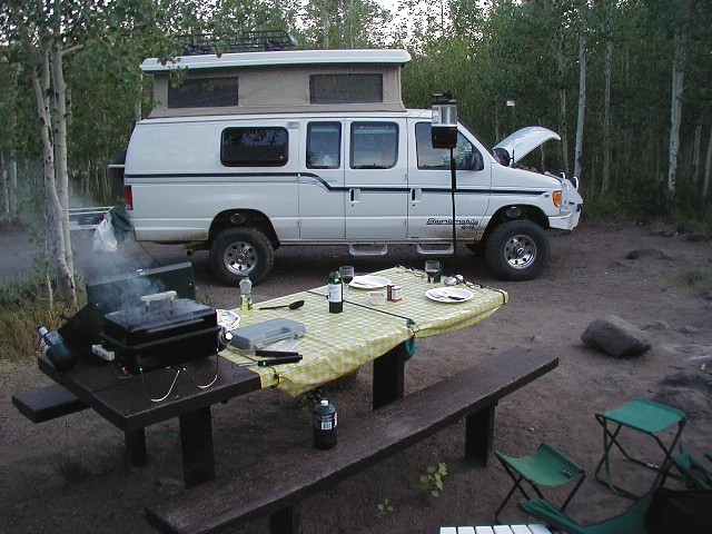 We stopped for the night at Mackinaw Campground in Fishlake National Forest. It was a very nice facility and the first National Forest campground that we've stayed in that had hot showers!