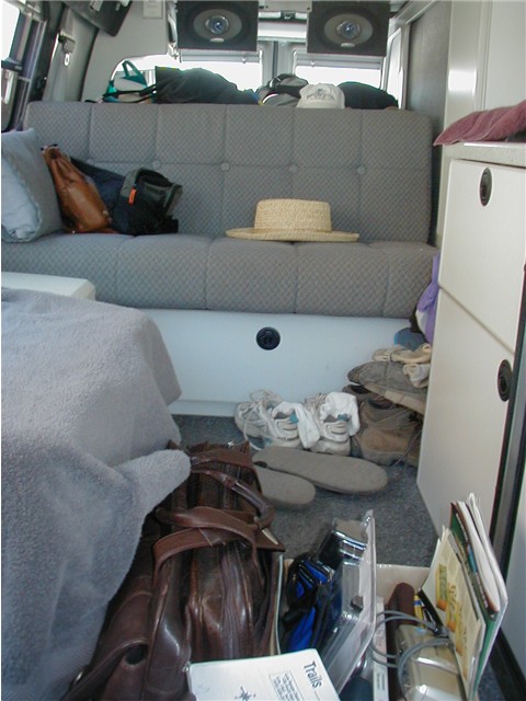 As we get closer to home, we're less careful about putting stuff away. This is what the van looks like after two weeks of hard travelling.