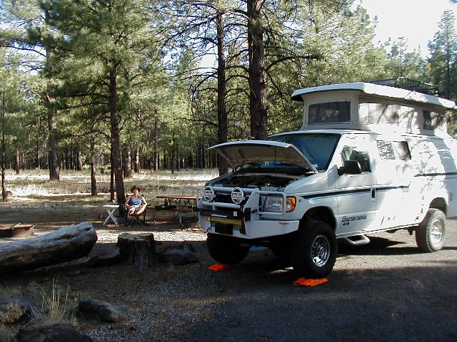 We left San Diego on Tuesday, June 18th, and headed toward Southwest Colorado to meet up with 90 or so other people who were crazy enough to invest untold amounts of money, time, imagination, and who knows what all into their 4WD Sportsmobile vans. The Rally started on Sunday, June 23, 2002, so we had enough time to make a couple stops on the way there, including Canyon de Chelly National Monument in Arizona and Mesa Verde National Park in Colorado.