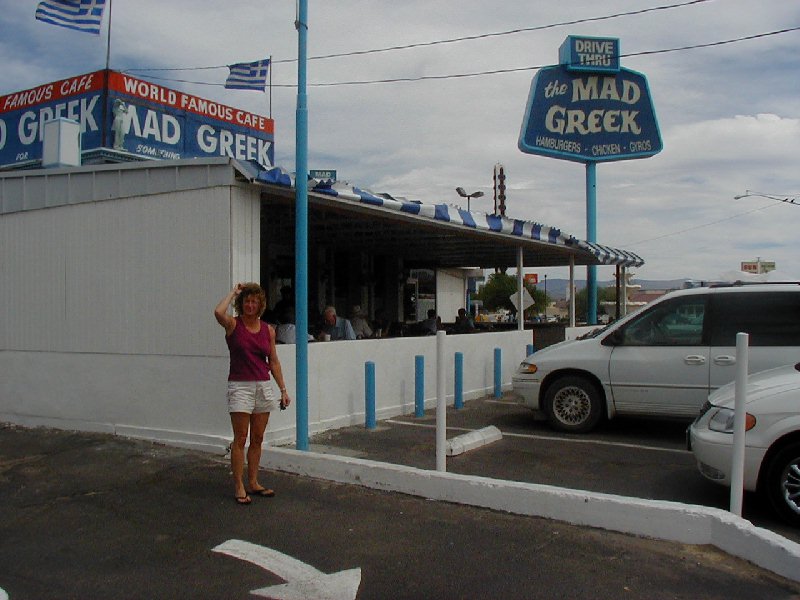 Getting a strawberry shake at the world-famous Mad Greek's.