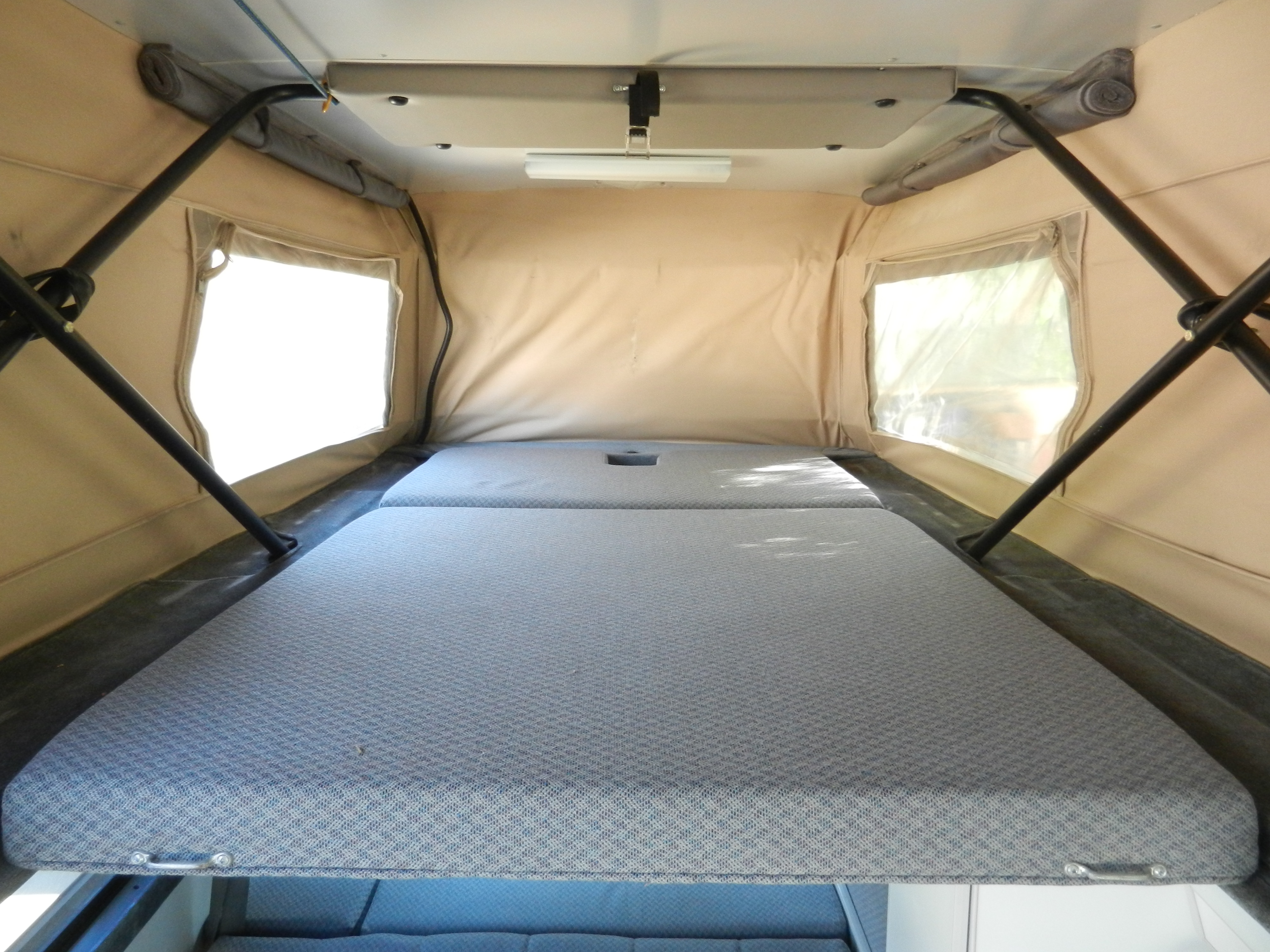 Upper bunk. The larger piece attaches to the pop top when not in use.