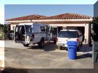 Here we are packing the van at the back of our little duplex in Encinitas. We're getting ready to head out to the desert to meet up with our friends and fellow Sportsmobilers, John and Janet, visiting from Moab, Utah.