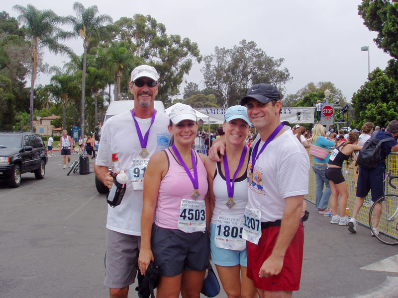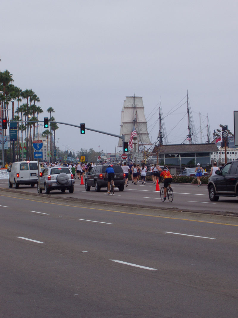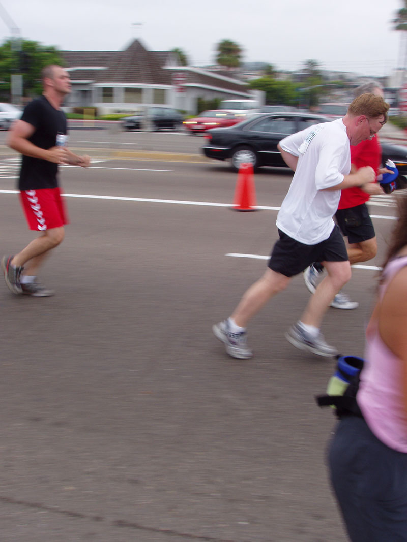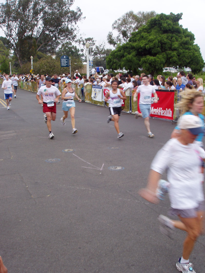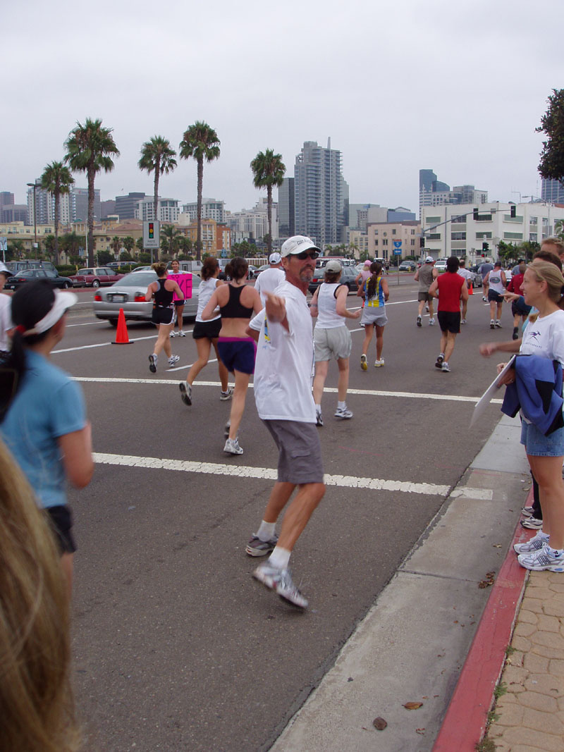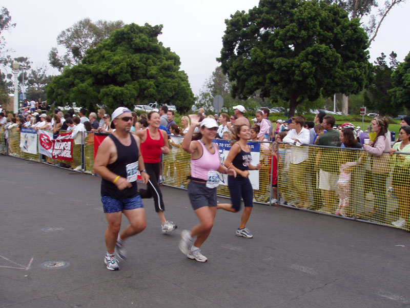 As most of you know, I 'm a runner. Well, maybe that is an exaggeration, but I'm definitely a jogger. I know this because I run, OK, I jog, 20 miles a week or so. Lately I've been running with my good friends Mary, her boyfriend John, and Mr. & Mrs. Tina and Ricardo. Unfortunately Ricardo was unable to run the AFC Half with us because of a recently broken tailbone. We're still waiting for the REAL story behind (no pun intended) this injury. Anyway, Ricardo was forced to the sidelines and became our main cheerleader and photographer along with my lovely wife, Lorri. They intercepted us along Harbor Drive and then again at the finish line in Balboa Park. Here is some of their handiwork. They were using my camera and I've included all the photos taken on Sunday. I'm not really sure what some of them are. Maybe Ricardo and Lorri can help us out.