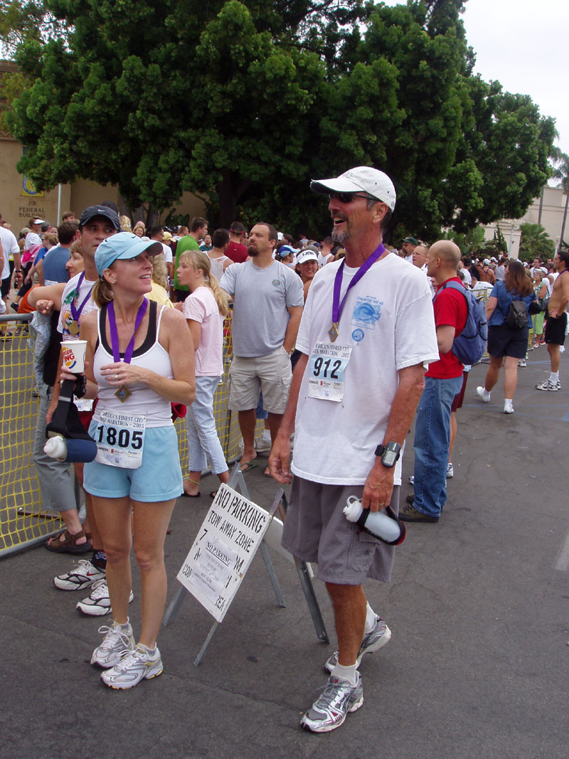 Check out the happy finishers on the right. We have our medals and we're headed to the beer garden! |