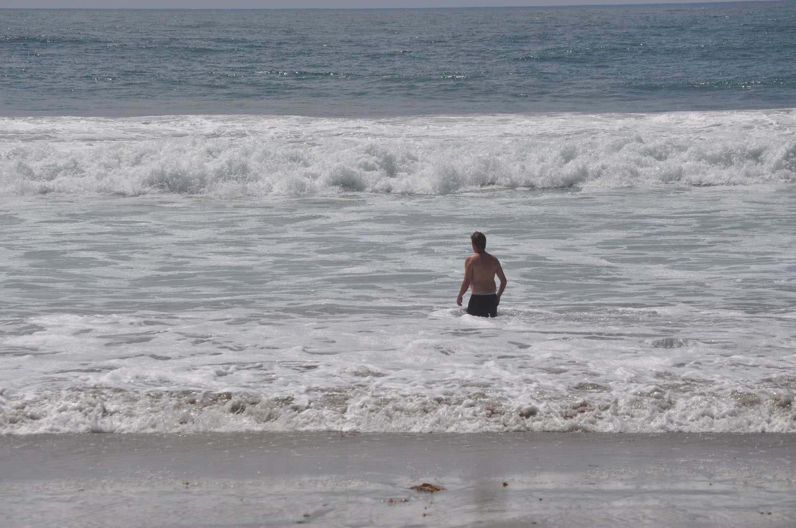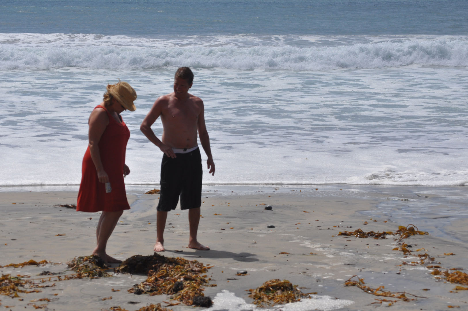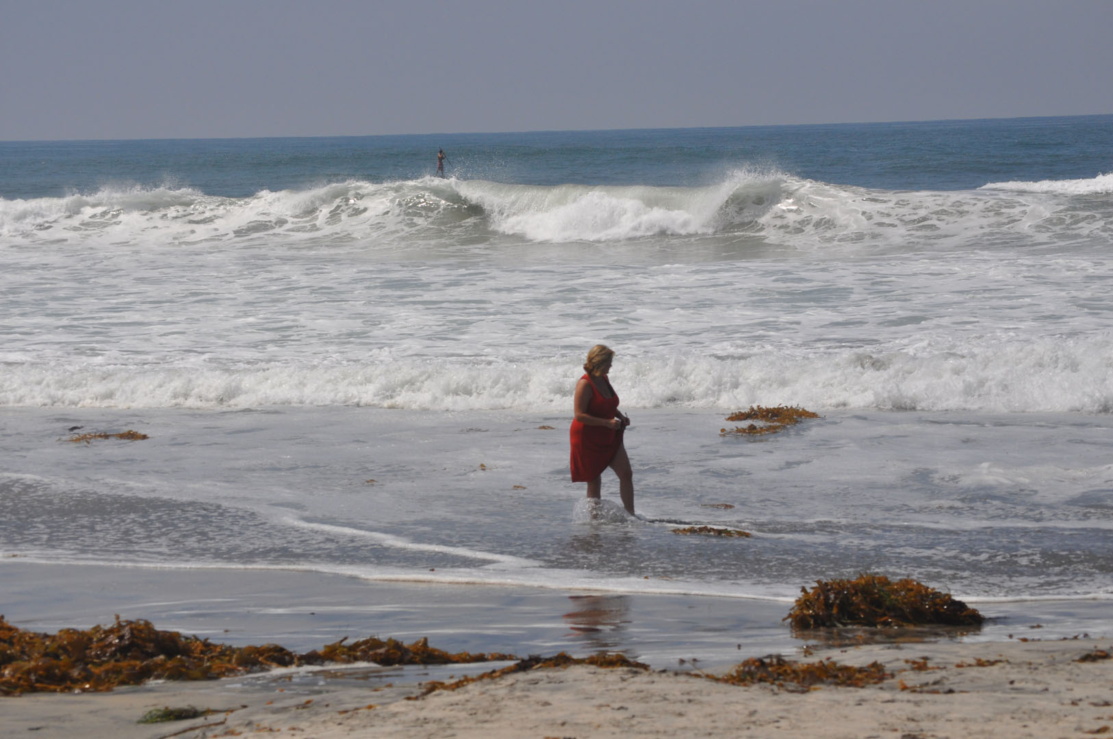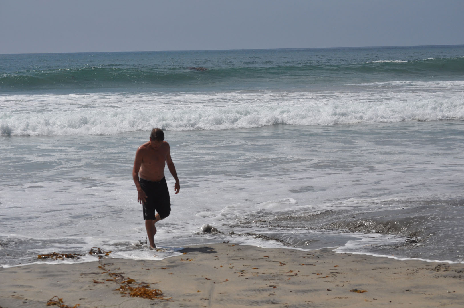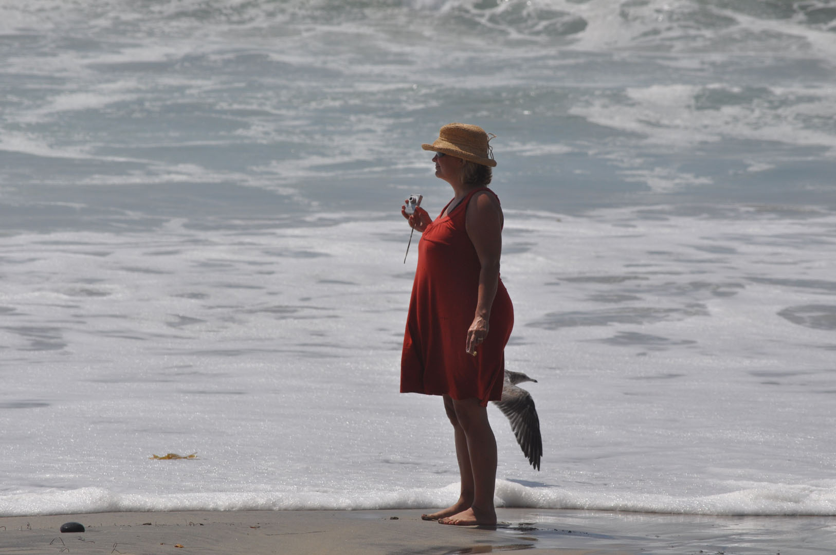 Mike did venture into the near-shore white water for a bit, but that was the extent of our epic surf encounter. Oh yeah, check out the seagull flying by Debbie.
