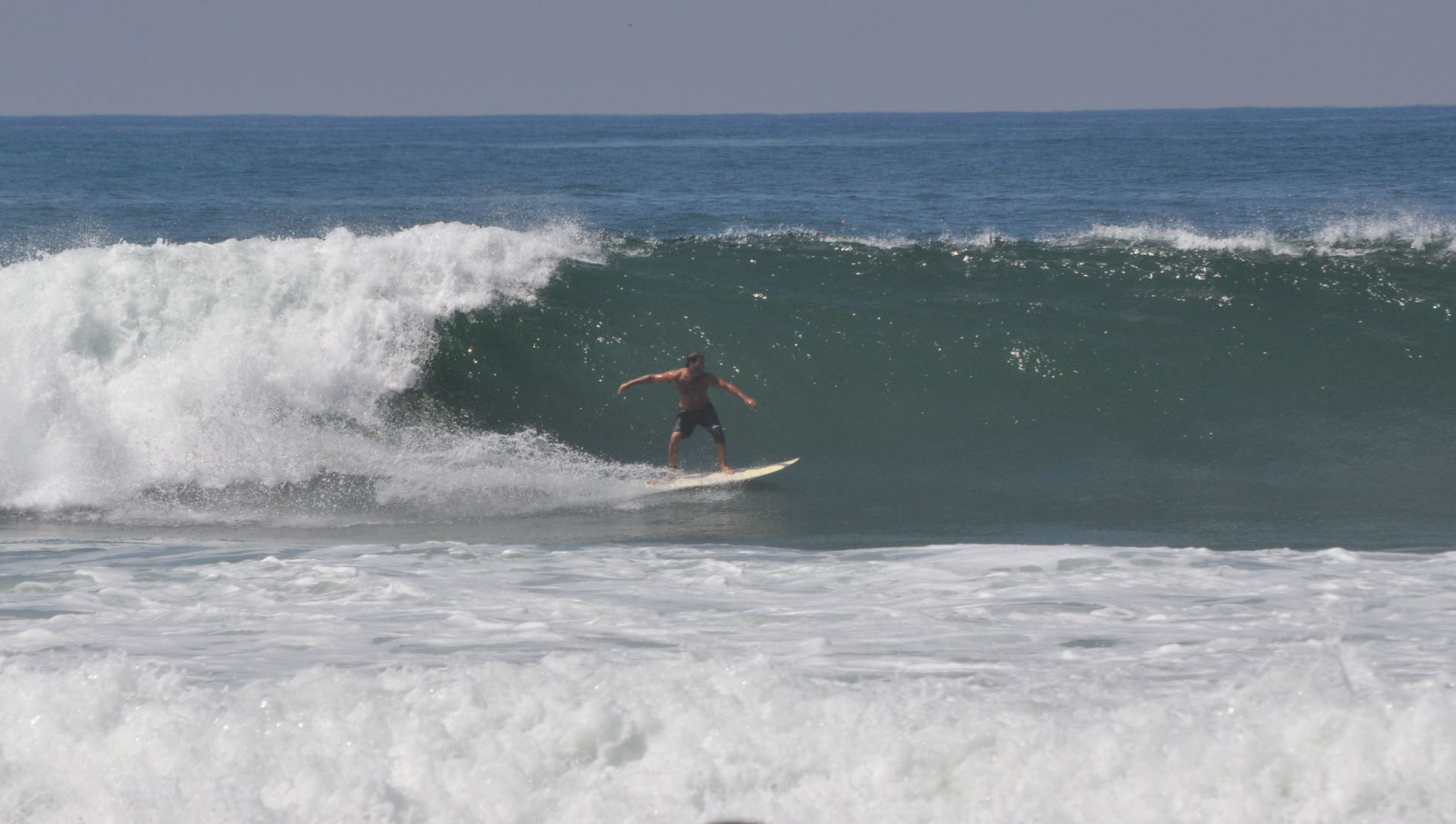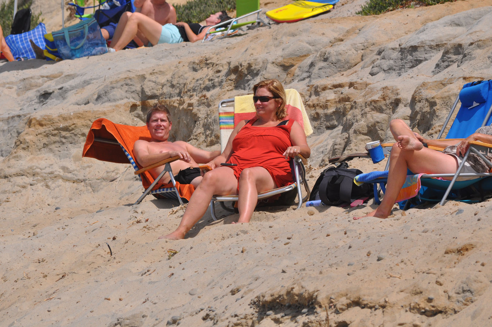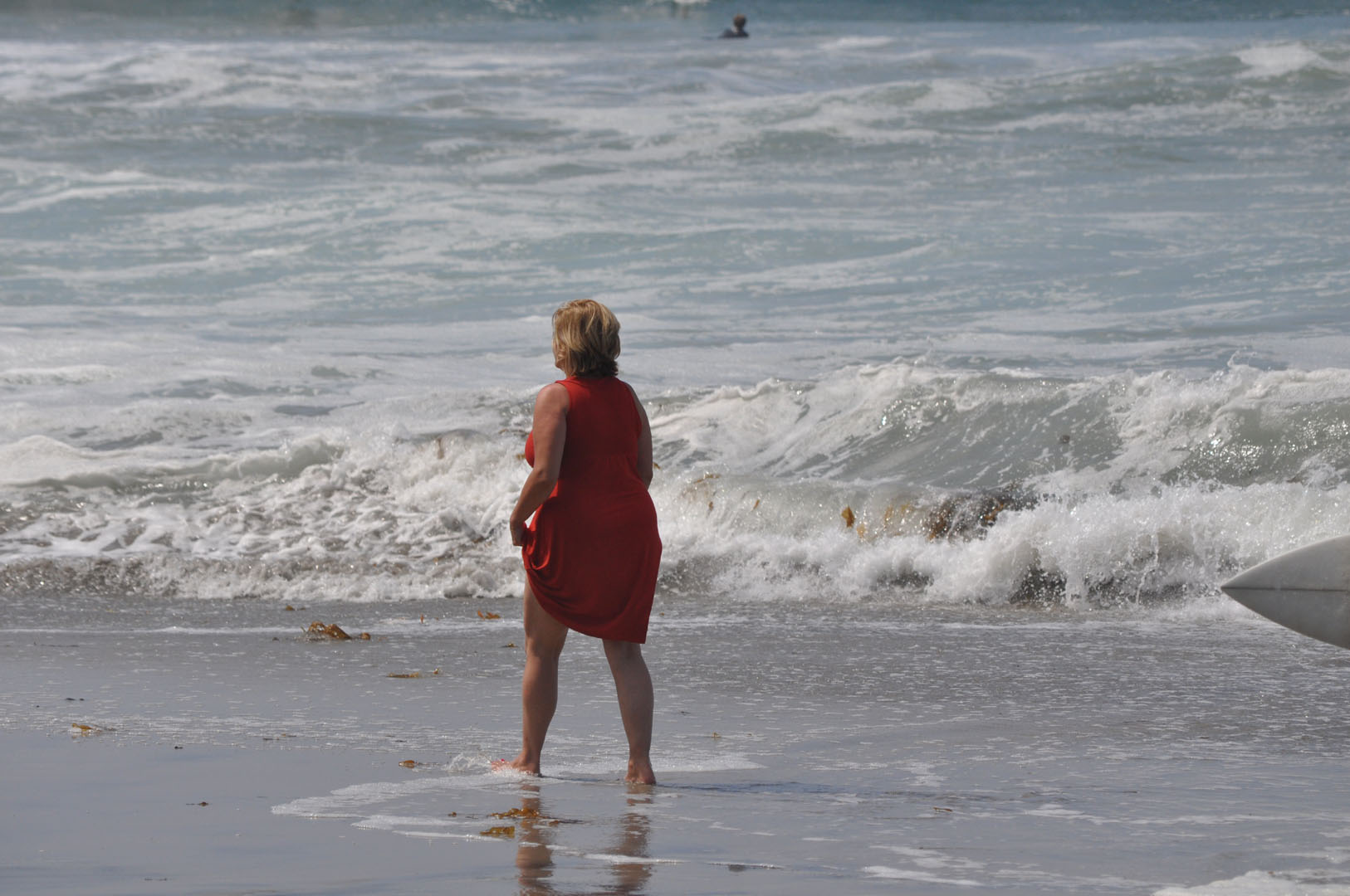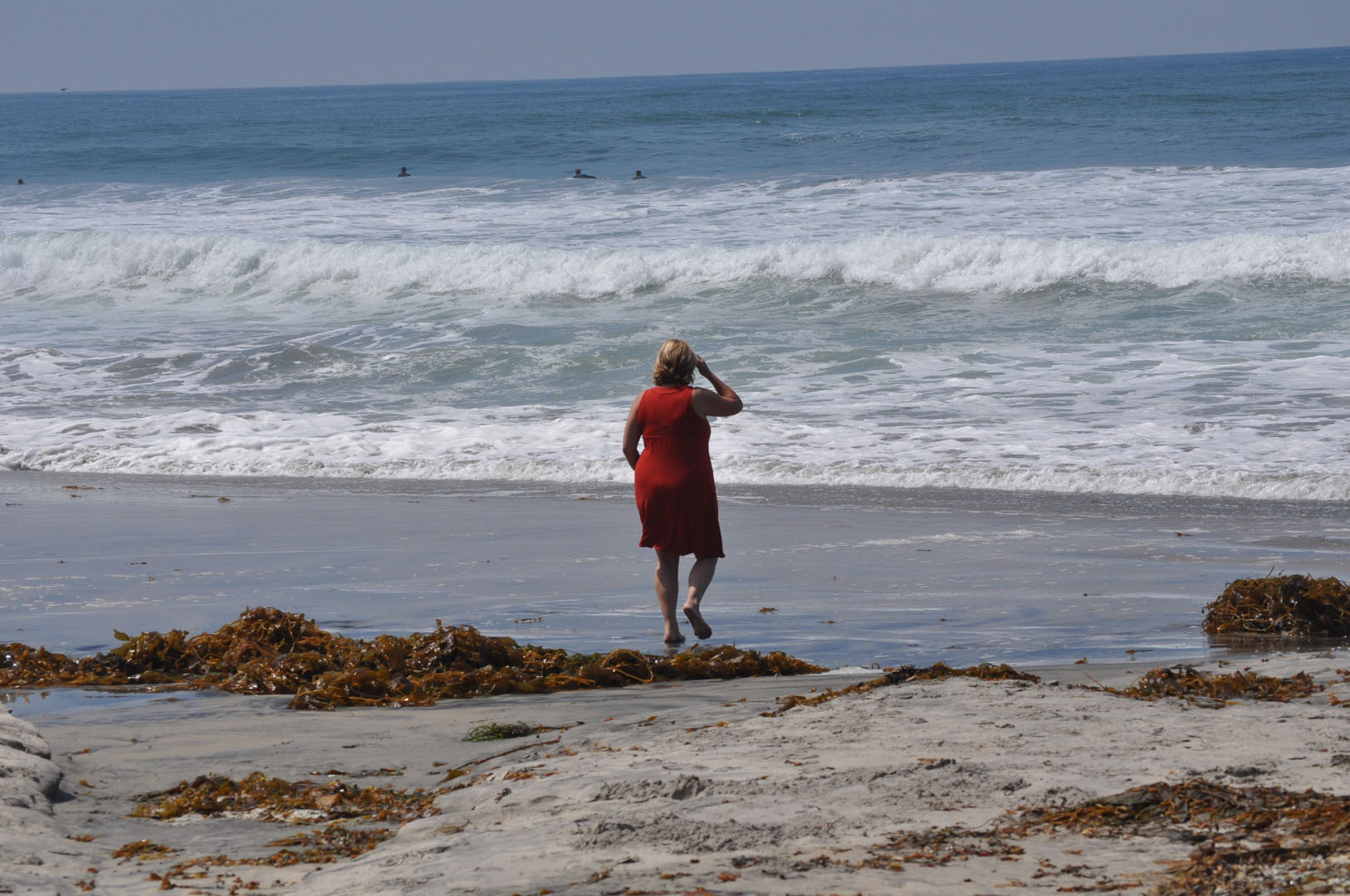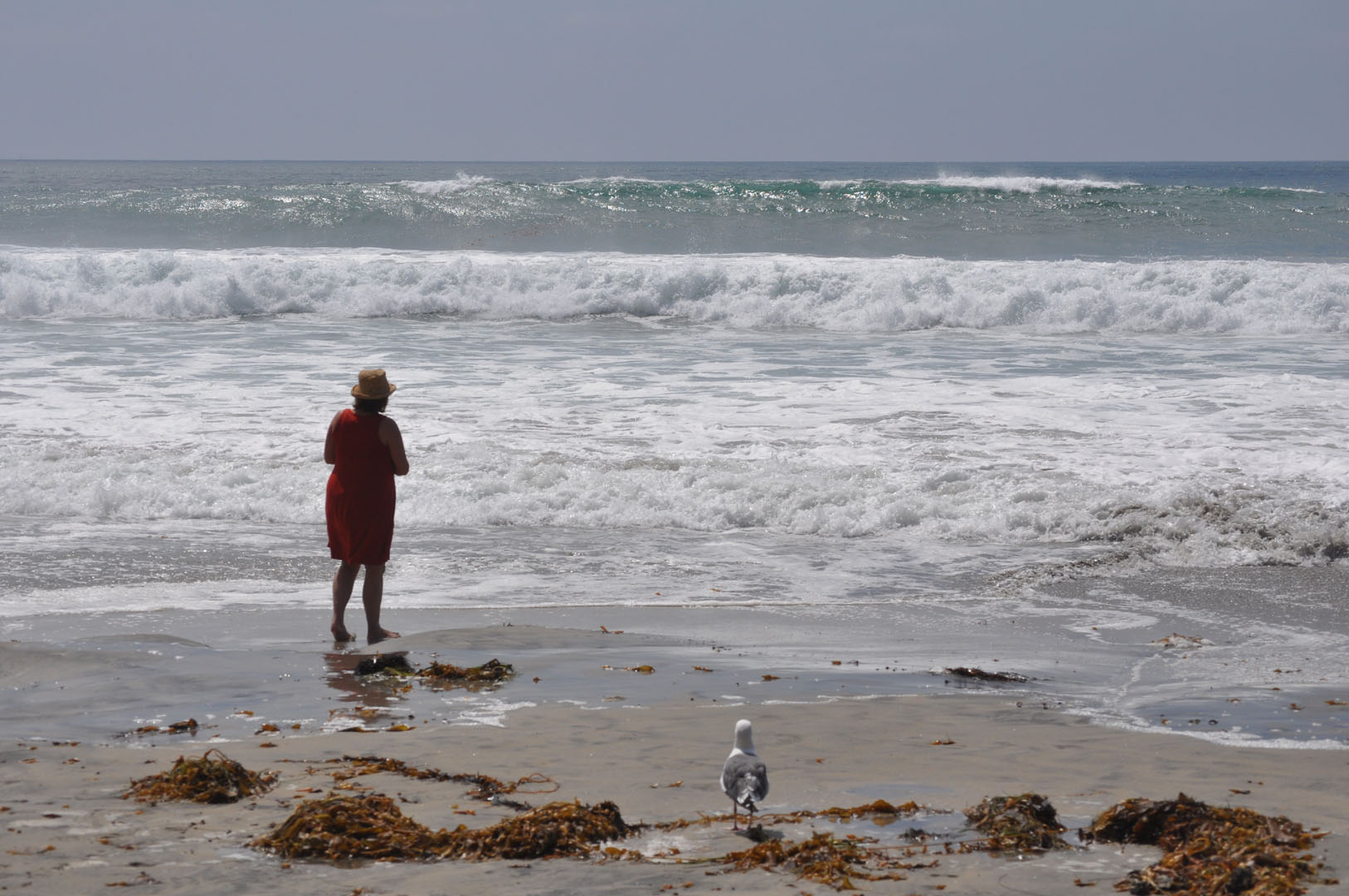 Mike did venture into the near-shore white water for a bit, but that was the extent of our epic surf encounter. Oh yeah, check out the seagull flying by Debbie.