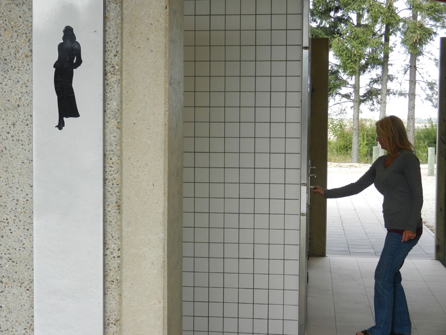 At a rest stop on the highway between Alsace and Champagne. Notice the symbol. Only in France.