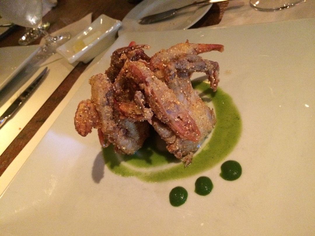 This is a soft shell crab as presented at The Fat Canary in Williamsburg.