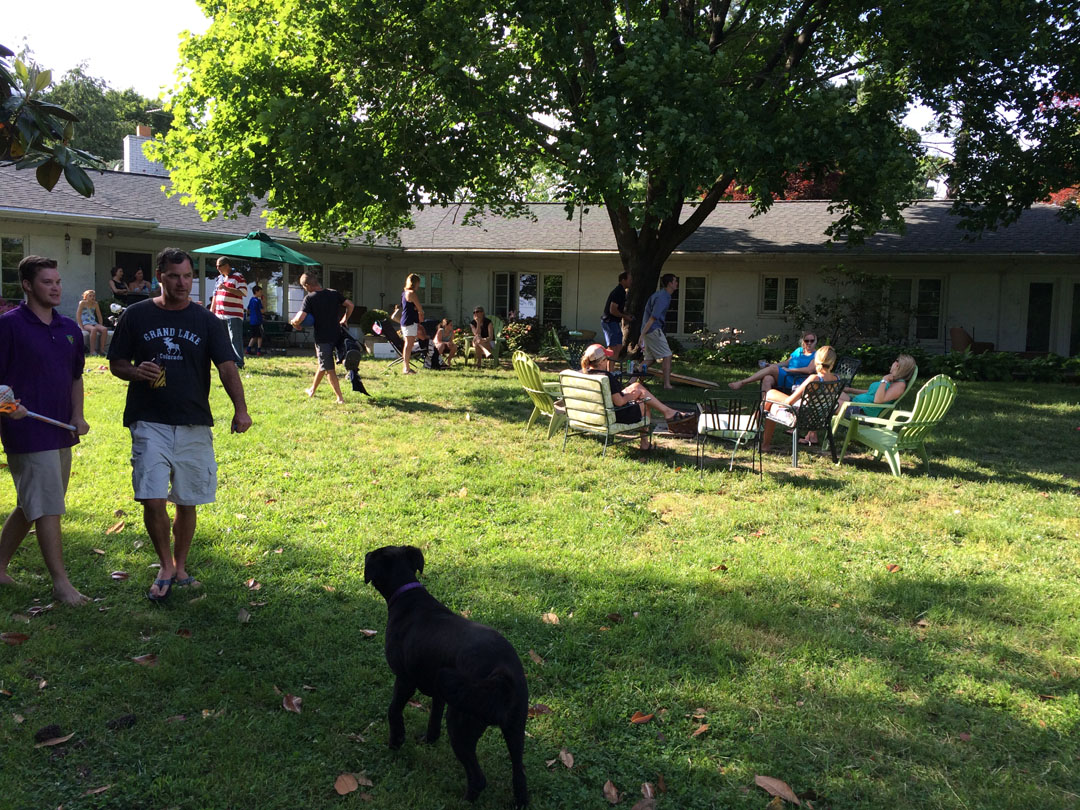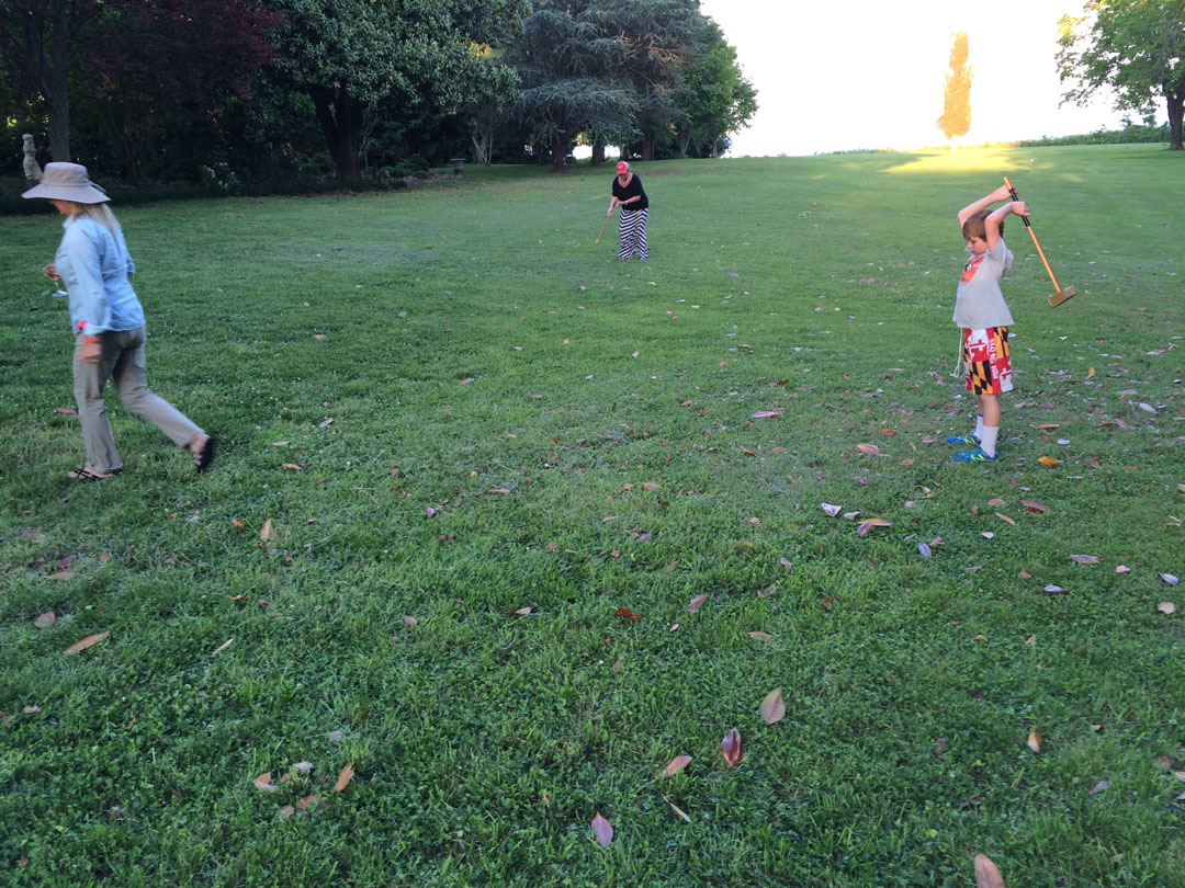 Miller (Austin and Sarah's kid) practicing croquet
