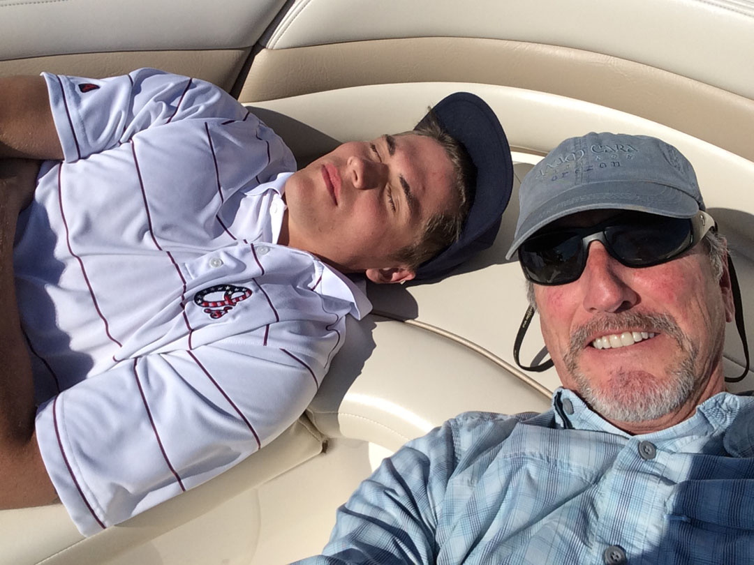 Jake and GPJ relaxing on the bow on the way back