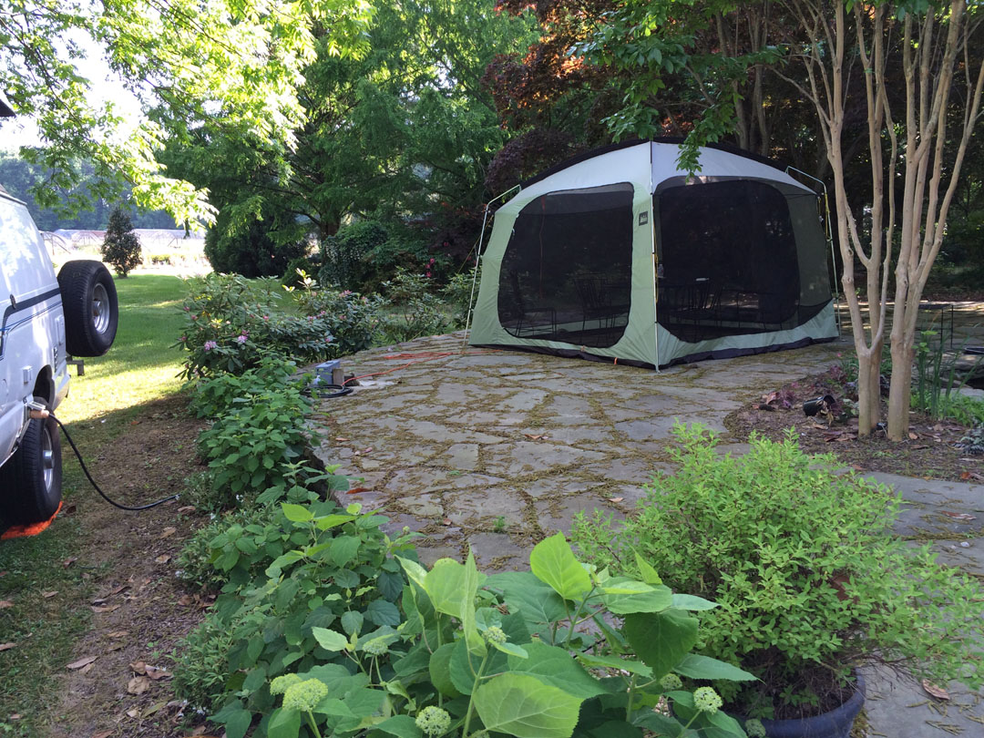On Monday, Memorial Day, we moved the screen room from the yard to the patio