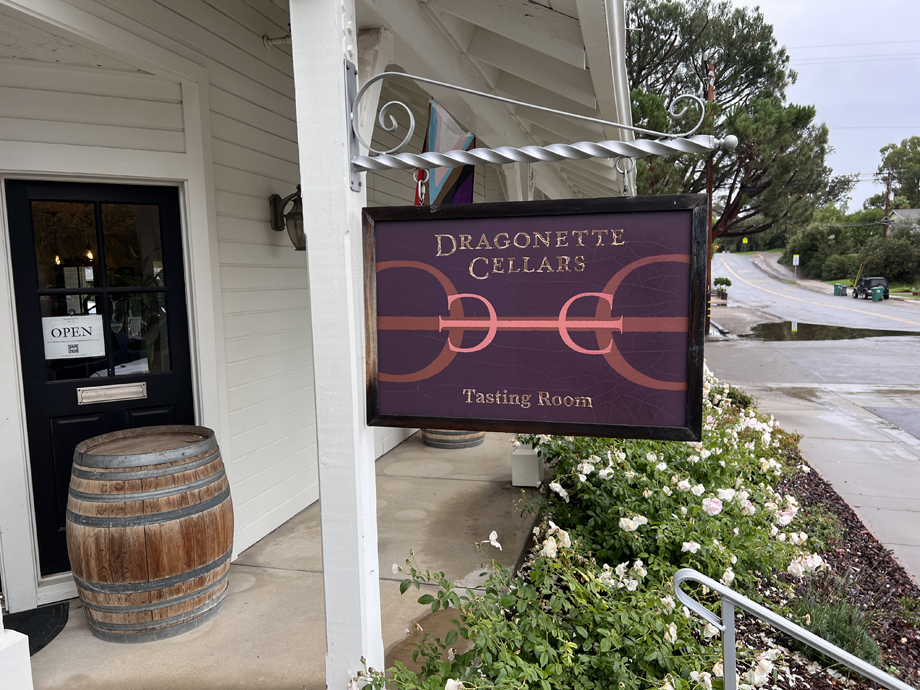 We stopped in Los Olivos and had a nice lunch at the Wine Merchant and then walked over to the Dragonette tasting room for our free wine! Free because we are Dragonette wine club members.