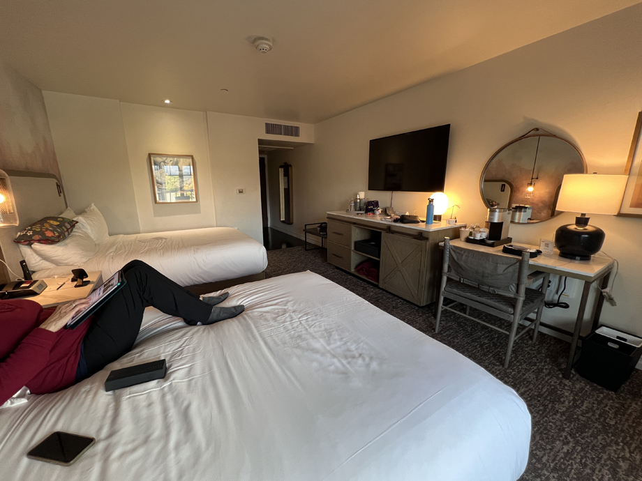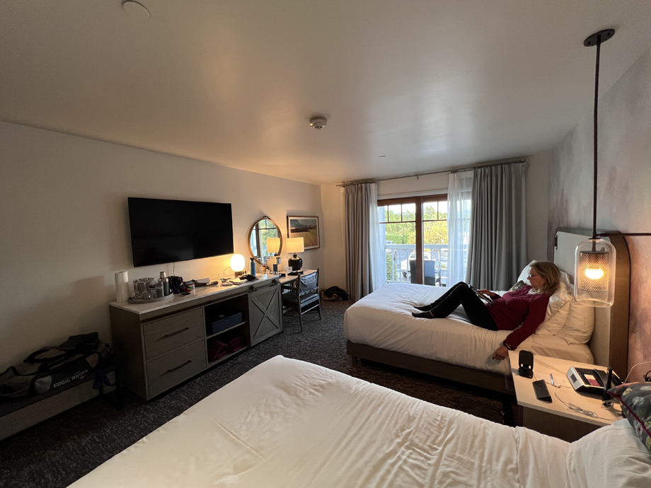 We booked a room at the Corque Hotel in Solvang for Monday and Tuesday nights, hoping for better weather than we had in Paso.
