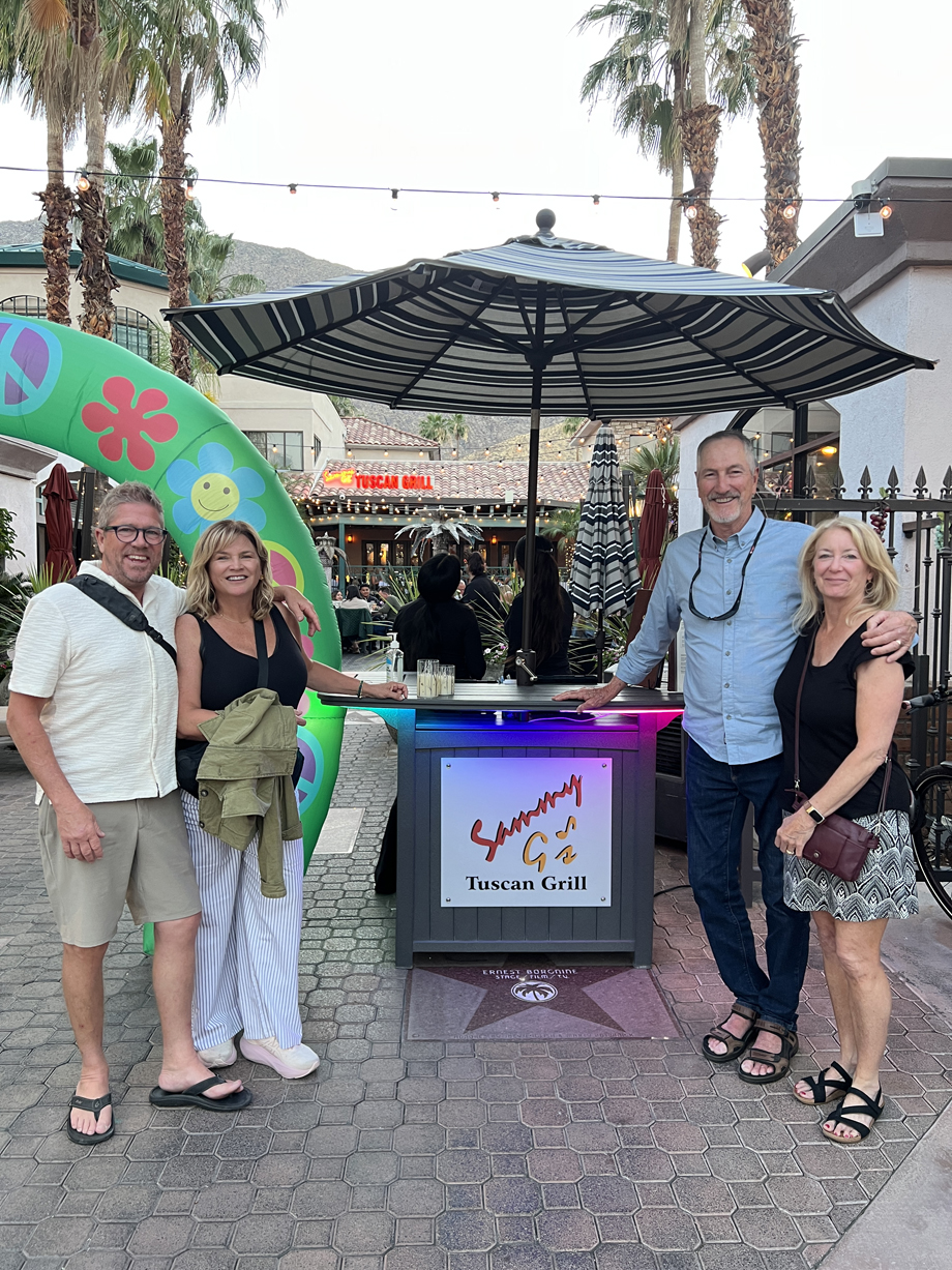 Deb and Mike hanging out with a larger than life Sonny Bono
