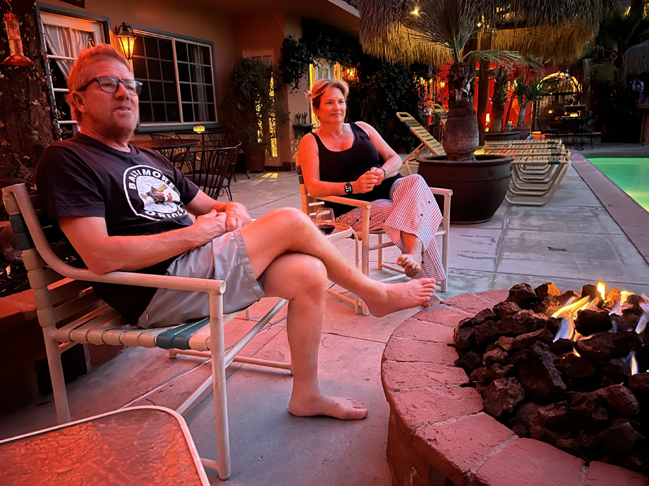 Sitting around the pool and fire pit later