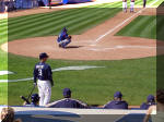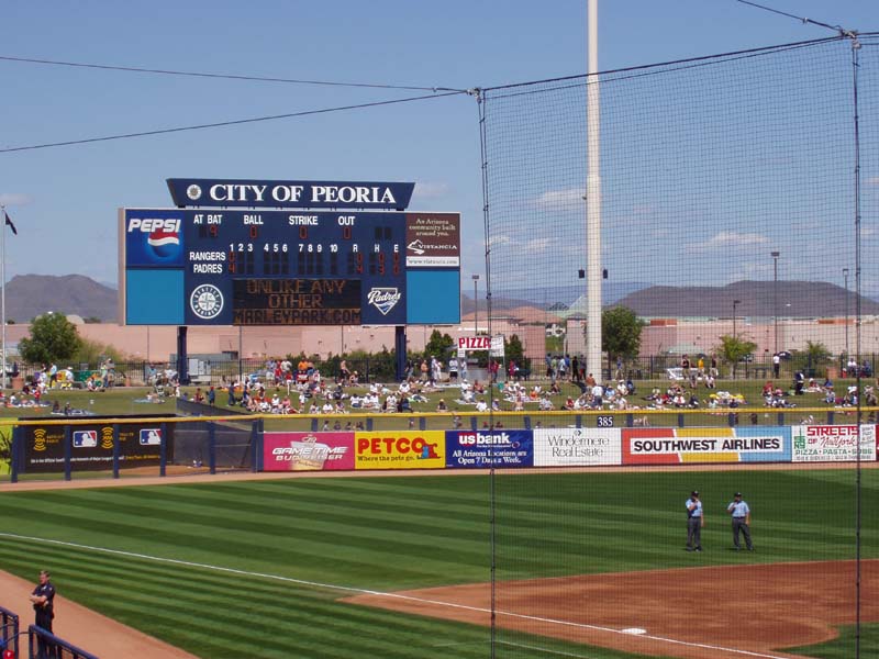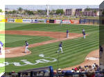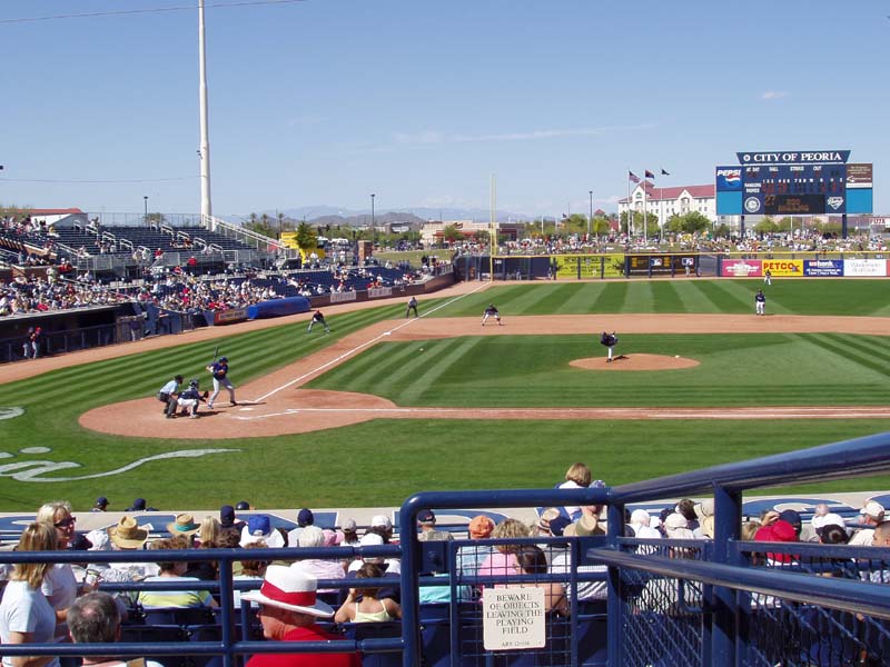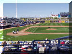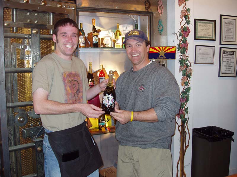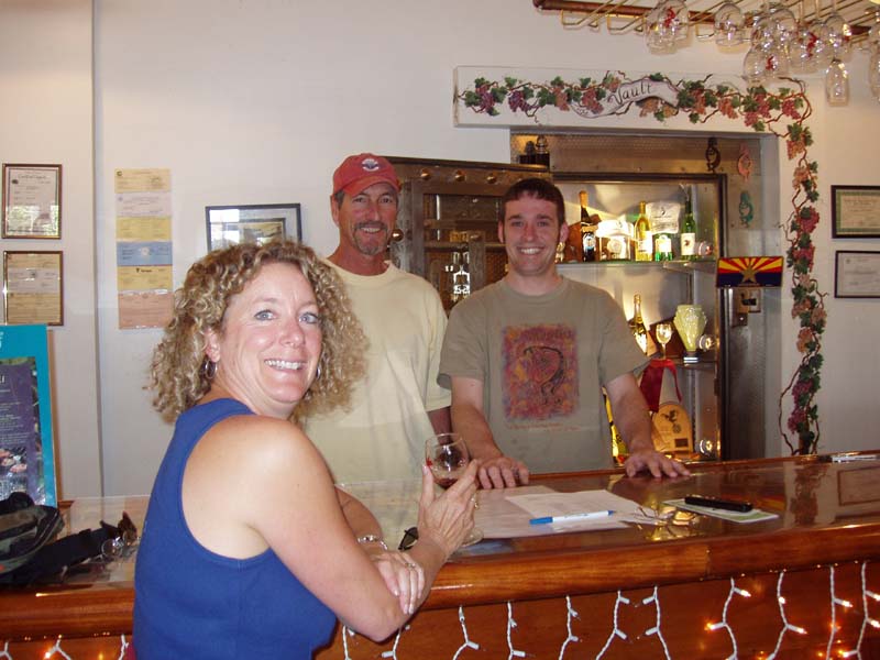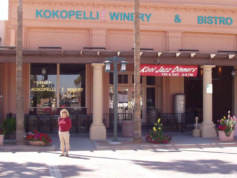 Wine Stop! The next morning we ate breakfast and packed up and headed to downtown Chandler, just southeast of Phoenix. We got to our first winery at 11:00, only to find that they didn’t normally open until 11:30. Since we had tickets to the Padres game at 1:00 back in Peoria, 30-something miles away, we thought that the best plan of action would be to knock on the door and see if someone would let us in for an early wine tasting. Sure enough we were in luck, the owner himself, Dennis Mincella, happened to be hanging around and let us in, introducing us to Joe the bartender so we could taste some fine Arizona wines. And they were fine wines and at very reasonable prices! Kokopelli Winery and Bistro is in historic downtown Chandler in a building that was at one time a bank. Joe and Dennis were terrific hosts and we wished we could have stayed longer and sampled the food. Dennis informed us that all the grapes for their wines are grown near Wilcox, Arizona, which is a ways east of Chandler but contains fewer people and is not exactly Napa Valley in terms of attracting tourists, so the figured Chandler was a better spot to get exposure for their wines and they’ve done an excellent job, not only with their wines, but with the décor and ambiance of the “bank”. Padres Spring Training We had to drag ourselves away from Kokopelli so that we could get to the Padres game. We zipped back across Phoenix on I-10 and Loop 101 and got to the Peoria Sports Complex just in time to miss the top half of the first but we saw the Pads score 4 in the bottom half. The game went at least 10 innings and we never did find out who won because we left after the tenth.