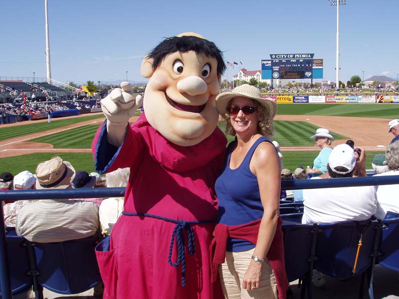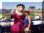 Lorri and the team mascot. I think he's called the "Swingin' Friar". I didn't want to get too close.